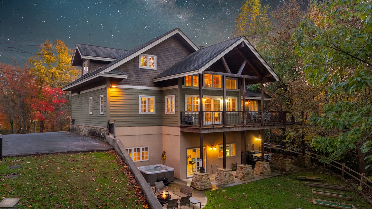 Perched on top a private 36-acre hilltop (the highest outside the Park!), Belltop is the perfect retreat. Enjoy our 2024 renovations! Brought to you by StayBham, creators of inspired retreats. Steam in the spacious steam room. Enjoy sunrise yoga in the loft. Soak in the hot tub overlooking the valley. Play vintage video games. Listen to a record or play the piano. Watch the sunset while you sit by the fire. Minutes from the Wears Valley entrance to the Smoky Mountains.