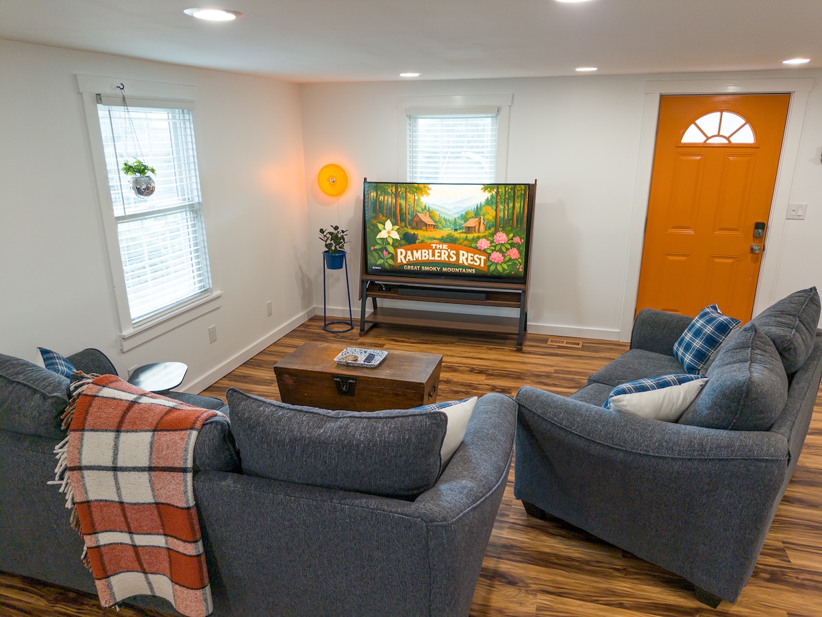 (Pindai kode QR untuk menonton video The We Cabin) Selamat datang di The We Cabin, kabin studio yang dibuat khusus yang dirancang bersama pasangan. Terletak di pusat Smoky Mountains, tempat peristirahatan intim ini menawarkan kenyamanan modern di lokasi pusat yang nyaman. Hindari tekanan jalan pegunungan yang curam dan nikmati akses mudah ke tempat - tempat wisata Smokies yang tak ada habisnya. Pigeon Forge hanya berjarak 3 mil, Gatlinburg hanya berjarak 10,5 mil, dan Smoky Mountain National Park hanya berjarak 10 mil dari depan pintu Anda. N