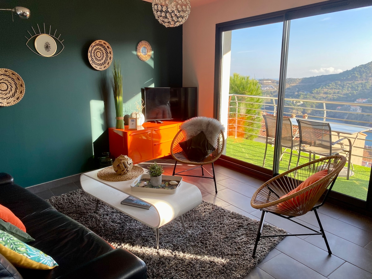 Apartemen 2 kamar tidur baru yang menawan dengan pemandangan laut di Cerbère