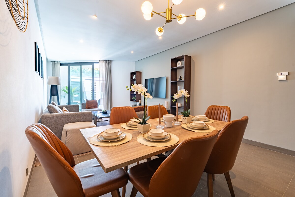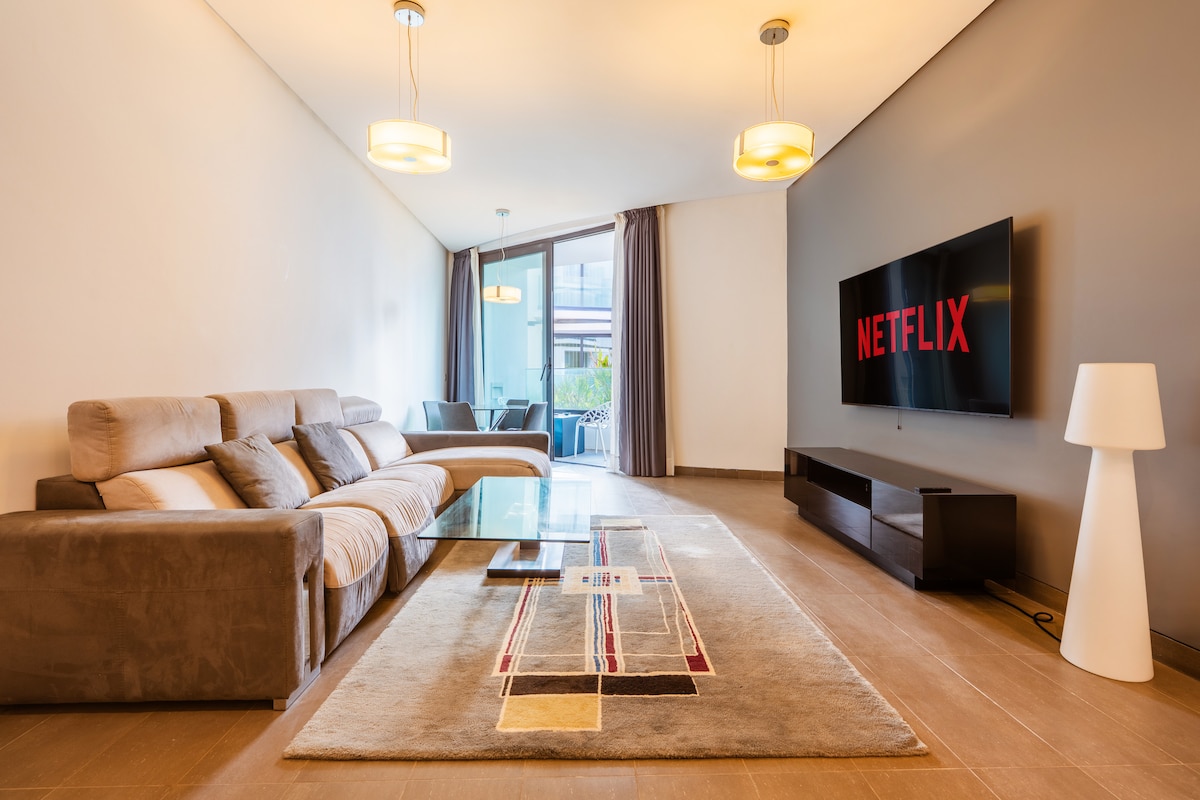 Apartemen 2 kamar tidur bergengsi di kompleks Anfaplace yang bergengsi, hanya 20 meter dari pantai. Dengan perabot yang dirancang oleh seorang arsitek, vila ini menawarkan dua suite dengan kamar mandi (bak mandi), Smart TV, fiber optic, dapur modern yang luas, dan ruang tamu yang bergaya. Teras yang cerah, taman luar ruangan, tempat parkir bawah tanah yang aman. Akses langsung ke Mall Anfaplace, restoran dan tepi laut. Ideal untuk masa inap yang halus antara kemewahan, kenyamanan dan pemandangan laut di Casablanca