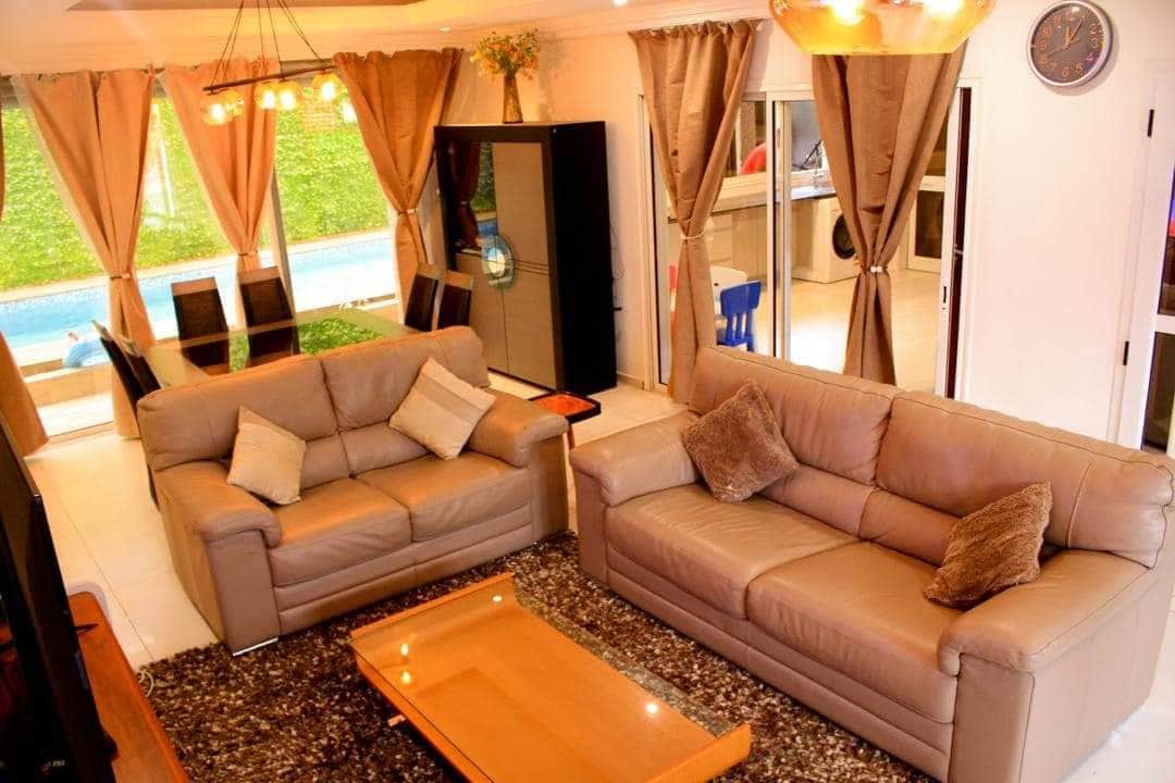Sangat cocok untuk rombongan besar atau keluarga, vila yang luas ini menawarkan kamar tidur utama dengan kamar mandi dalam yang dilengkapi bak mandi dan pancuran. Lantai atas memiliki 2 kamar mandi lagi, ditambah kamar mandi tamu di lantai bawah. Ber-AC penuh, tempat ini memiliki area tamu yang luas dan dapur lengkap. Nikmati teras besar yang terbuka ke halaman hijau dengan lounge luar ruangan. Fasilitas termasuk Wi-Fi berkecepatan tinggi khusus, Canal+, Netflix, mesin cuci, dan pemanas air besar. Ideal untuk masa inap jangka pendek atau panjang.