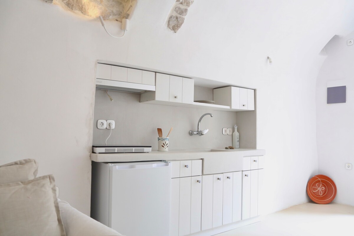 Stone House Retreat adalah salah satu tempat yang bangunannya tampak tumbuh dari bumi alih-alih berdiri di atasnya. Dinding tebal menahan kesejukan pagi hingga panasnya siang hari, tempat tidur double memenuhi kamar utama dengan nuansa tenang, dan teras membingkai pemandangan hutan zaitun yang membentang hingga ke laut. Dapur kecil, AC, Wi-Fi yang andal, kamar mandi yang bersih—semuanya ada, tetapi tidak mengganggu. Untuk pasangan atau wisatawan solo yang merasa seperti di rumah di tempat yang kokoh dan agak bersejarah.
