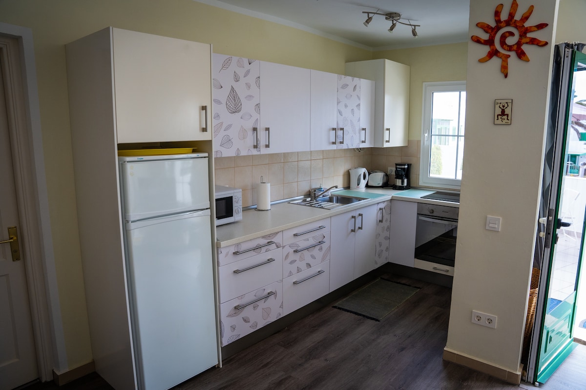This bright and airy studio apartment is completed to a very high standard. It has air conditioning (coin operated and payable by guests if required), free wifi and free full TV package. It has a private garden area with outside dining table and chairs, 2 sunloungers and a Weber charcoal BBQ. The studio is situated on a quiet residential community with a local shop only 2 minutes walk away. The Town Centre of Playa Blanca is only a 15 minute walk from the studio apartment.