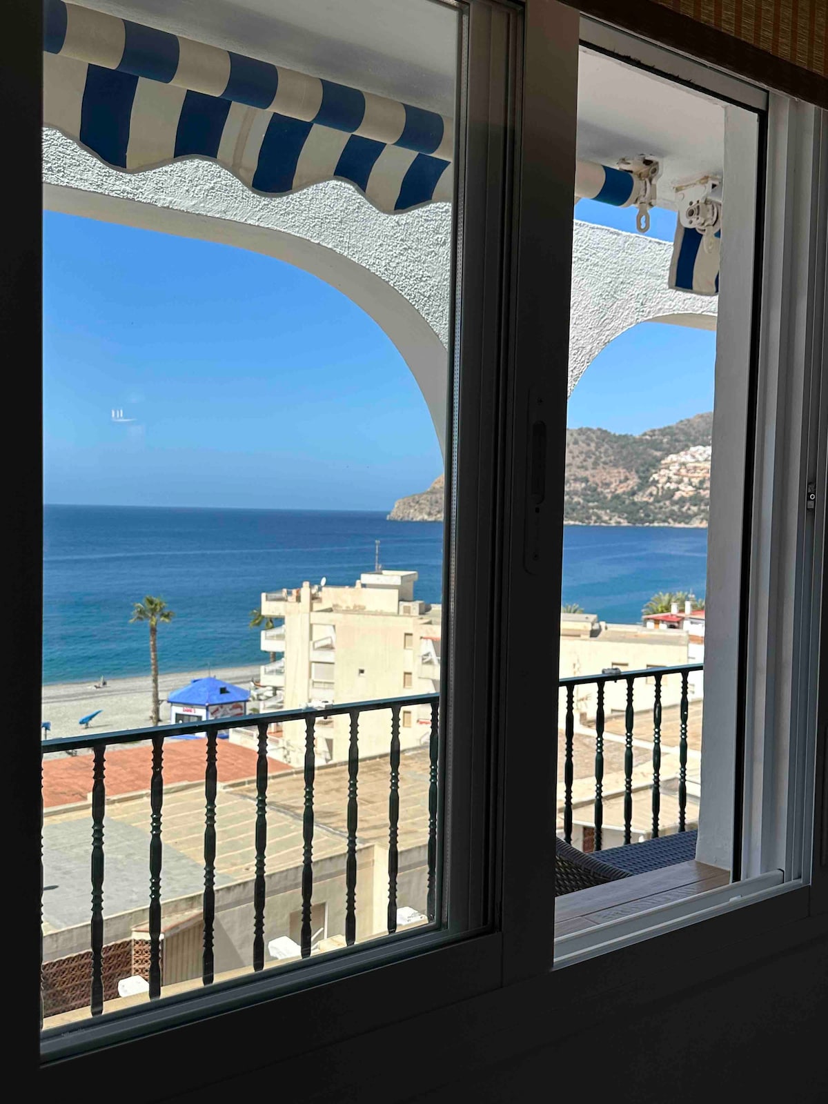 Apartemen tepi pantai yang indah dengan pemandangan Laut Mediterania yang fantastis, kolam renang komunitas di musim panas, parkir pribadi, wifi serat cepat, TV layar datar 50", AC, Almuñécar, Playa de Velilla, Costa Tropical, bangunan Intiyan. Semua layanan bisa ditempuh dengan berjalan kaki (supermarket, apotek, tukang daging, restoran, toko buah - buahan). Teras yang luas, ruang makan, dan dapur memiliki pemandangan pantai dan laut yang indah.