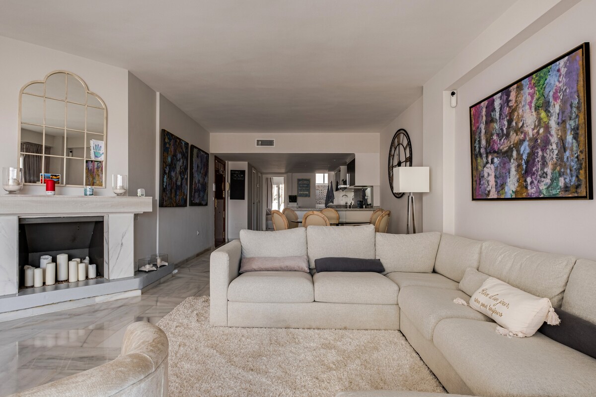 Nikmati pemandangan spektakuler pantai, promenade, dan kolam renang dari apartemen yang berlokasi baik ini di urbanisasi La Roca, baik dari kamar tidur atau dengan secangkir Nespresso di patio. Aksen biru muda dan gambar Spanyol ikonik ditampilkan di dalamnya. Bangun dengan matahari terbit atau nikmati pemandangan matahari terbenam yang indah saat Anda bersantai di teras di tempat berjemur Bali dan mendengarkan ombak. Anda akan menyukai nuansa yang cerah dan lapang yang disediakan melalui jendela geser.