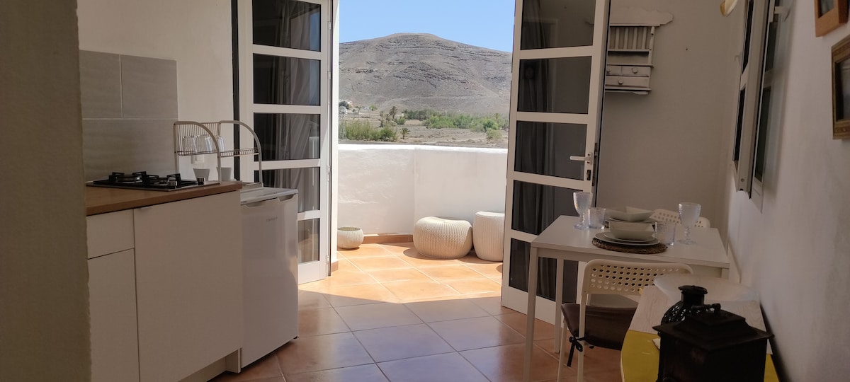 Apartamento situado en el pueblo de Tarajalejo, dispone de una gran terraza son sol durante todo el día. Zona tranquila, a 10 minutos de la playa El apartamento dispone de lavadora, cocina equipada , plancha de cocina eléctrica, Wifi , ventilador, freidora de aire, microondas, Aire acondicionado, ropa de cama , toallas, toallas de playa, sombrilla y sillas de playa. Datos del registro: España- Número Registro nacional ESHFTU00003501180003398590020000000000VV-35-2-00034542