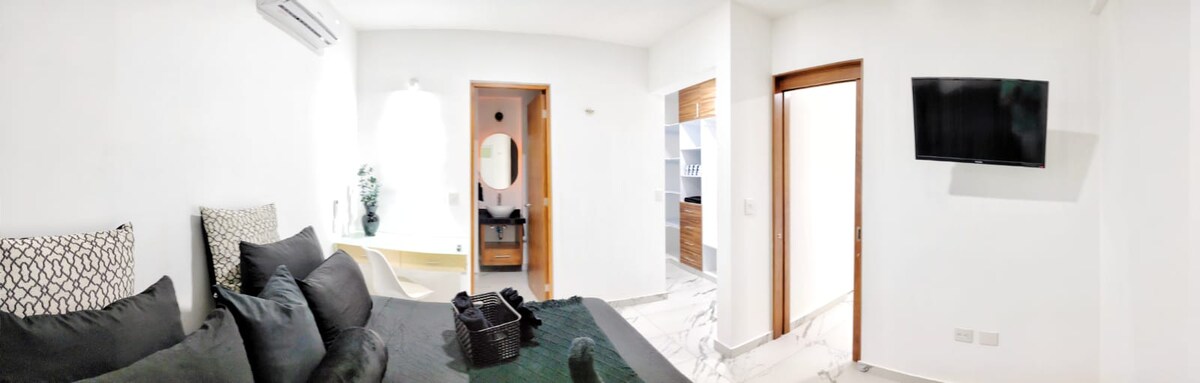Nikmati pengalaman bergaya di akomodasi ini di jantung Playa del Carmen, 5th Av. Anda akan menemukan semua yang Anda butuhkan, karena ini adalah area wisata yang paling banyak, memiliki restoran, pusat perbelanjaan terbaik, La Quinta Alegría, calle corazón, dan banyak lagi .. semua berjalan kaki, Pantai hanya berjarak sekitar 300 meter Akses ke gedung ini melalui resepsionis yang luas dan indah dengan Wi - Fi dan AC, penjaga 24 jam, pintu listrik dengan kunci untuk mengakses lift.