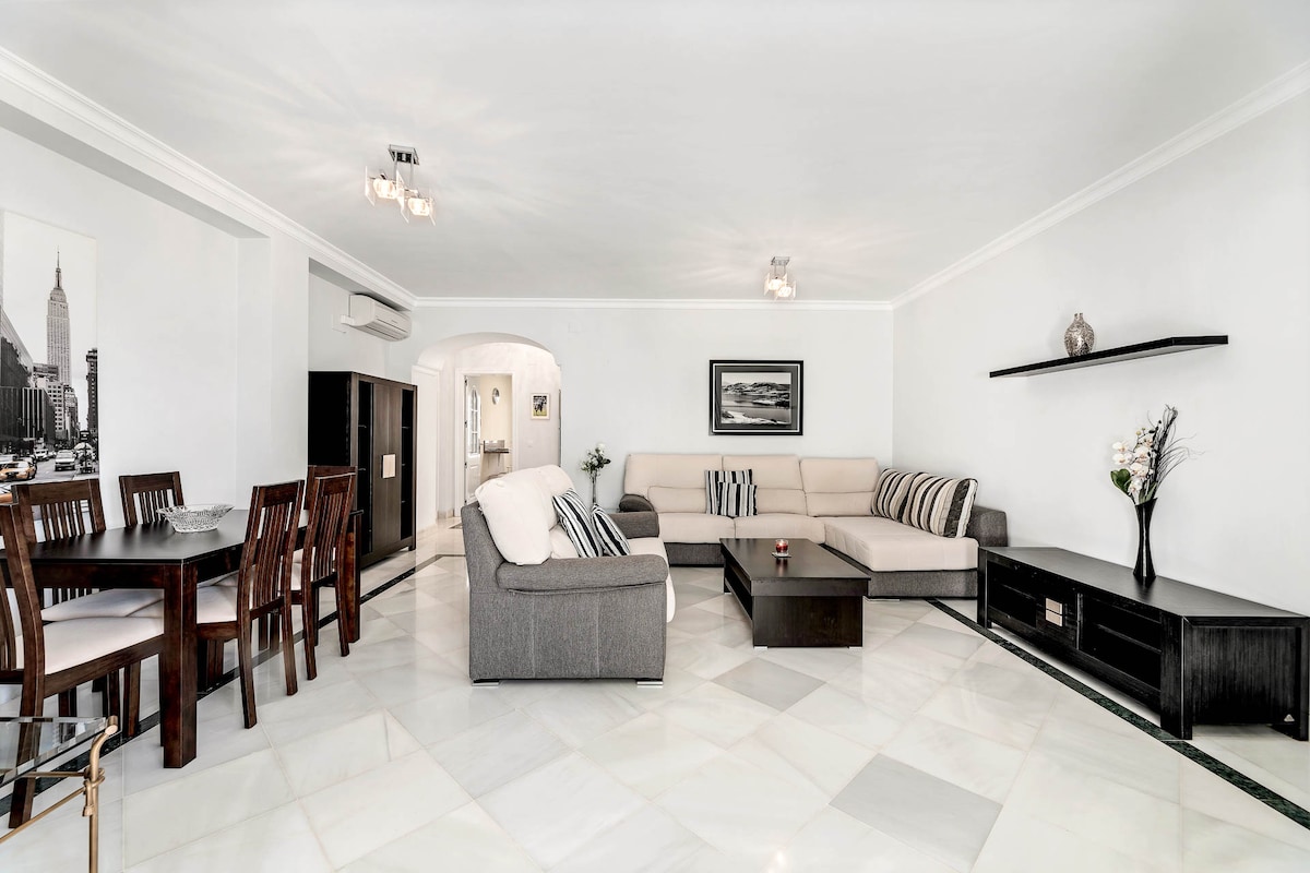Apartemen baru kami, HIGHend, hanya 8 menit dari pusat Marbella. Tempat ini menawarkan pemandangan laut, menciptakan suasana yang tenang untuk liburan Spanyol Anda. Apartemen ini memiliki keanggunan Skandinavia dengan garis - garis yang bersih, nada netral, & desain minimalis, menciptakan suasana yang cerah & canggih untuk masa inap yang berkesan. Tamu kami bisa mengakses spa dengan kolam renang berpemanas, sauna & gym, semuanya gratis dengan pemandangan laut yang fantastis. Gym ini dilengkapi dengan mesin top - line & clubhouse menambahkan elemen sosial pada masa inap.