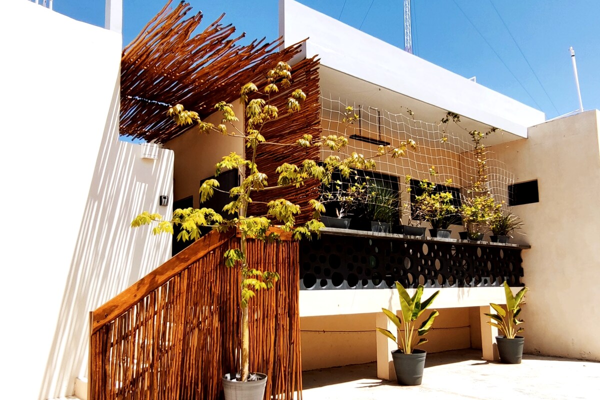 Akomodasi yang indah dengan pintu masuk terpisah dan taman pribadi yang mengarah ke suite yang nyaman dengan tempat tidur queen untuk dua orang, kamar mandi lengkap, dan dapur pribadi. Kolam renang adalah satu - satunya ruang bersama. Terletak di area campuran dengan restoran dan berbagai toko. Pintu masuk ke Zona Hotel berjarak 300 meter, tempat transportasi umum melewati pantai, dan stasiun ADO berjarak 5 menit, dengan rute ke bandara dan destinasi wisata lainnya.