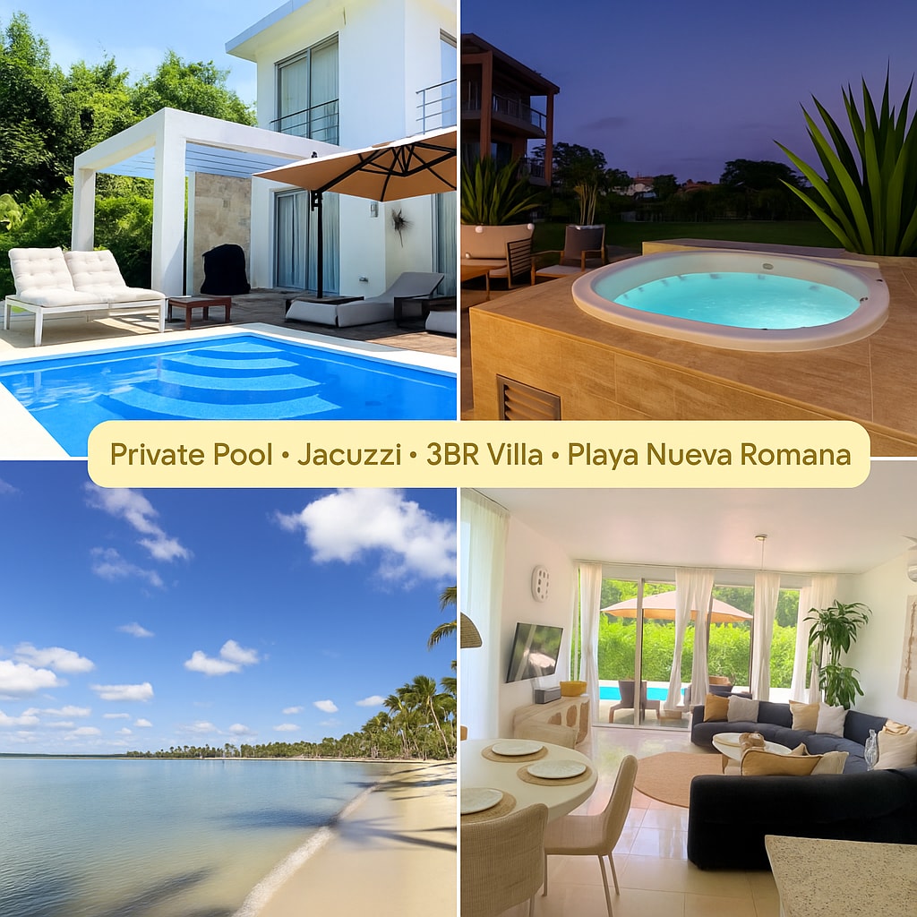✨ Temukan kemewahan di vila kami di Playa Nueva Romana. Hanya 45 menit dari Bandara Las Américas, 20 menit dari La Romana, dan 60 menit dari Punta Cana✈️. Tempat tinggal dua lantai ini menampilkan finishing eksklusif dan dekorasi yang dipersonalisasi🏡. Cocok untuk bersantai, menghabiskan waktu bersama keluarga, dan menciptakan kenangan yang tak terlupakan💕🌴. Nikmati kolam renang pribadi🏊, jacuzzi luar ruangan🛁, akses pantai pribadi🏖️, area hijau yang subur🌿, dan restoran di lokasi🍽️. Oasis Karibia menanti Anda! 🌞