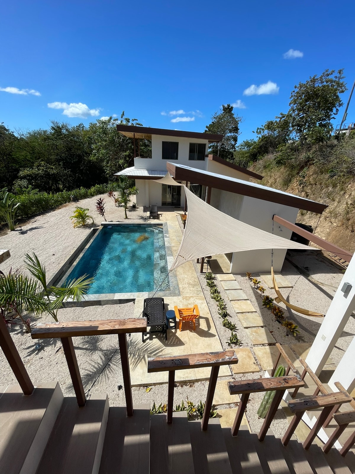 Baru direnovasi. Menginap di vila yang indah dengan kolam renang infinity pribadi, berlokasi di komunitas yang aman, dekat dengan pantai terindah di Kosta Rika. Direnovasi sepenuhnya pada tahun 2025, tempat ini menawarkan kenyamanan modern dan pemandangan menakjubkan. • 2 kamar tidur ber - AC dengan kamar mandi pribadi • Ruang terbuka dengan dapur lengkap dan ruang tamu yang nyaman • Ruang makan luar ruangan untuk matahari terbenam yang spektakuler • Wi - Fi, alarm, dan parkir berpagar