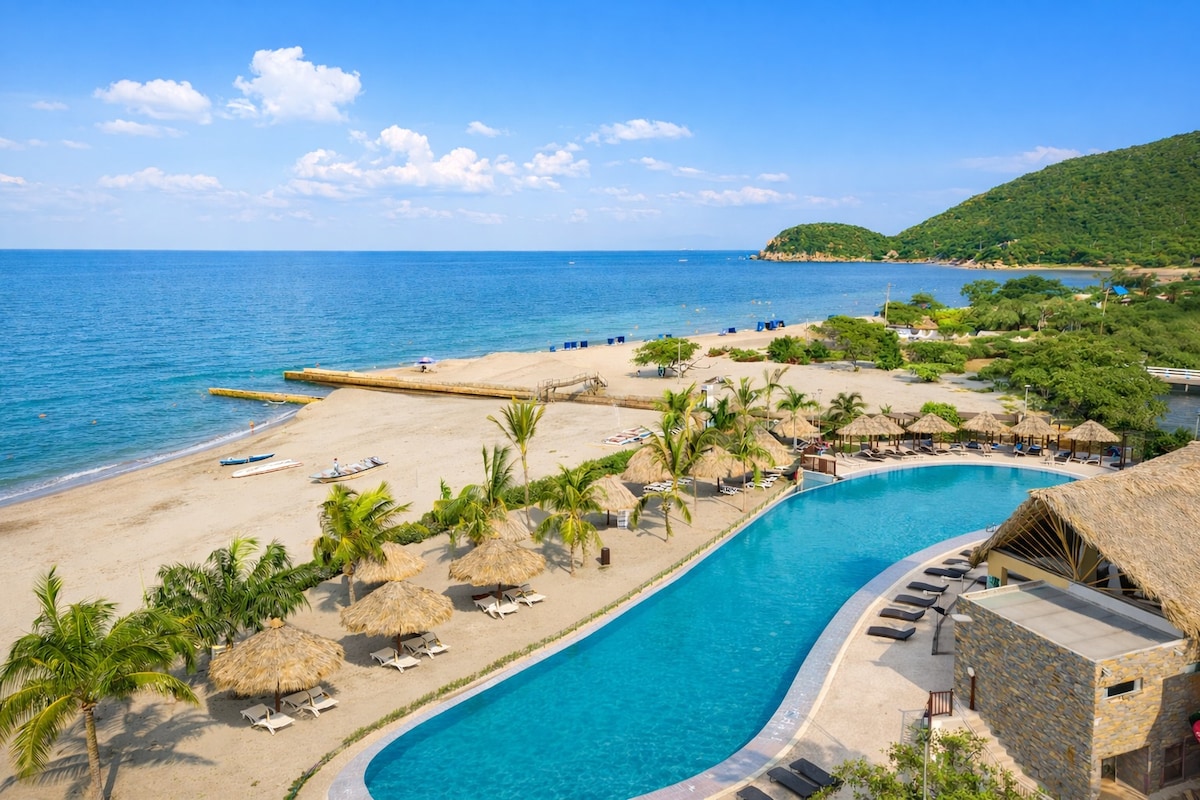 Apartemen untuk hingga 6 orang, berlokasi di sektor Rodadero Sur eksklusif di Santa Marta, 15 menit dari bandara. Kompleks ini memiliki 2 lobi tipe hotel, kolam renang, jacuzzi, BBQ, pintu keluar langsung ke pantai, parkir pribadi, gym, restoran, golf, lapangan sepak bola 6 sisi, ruang permainan anak-anak. PENTING: Demi keselamatanmu dan berdasarkan kebijakan, kamu perlu membeli pegangan yang mengidentifikasimu sebagai tamu, nilai tambahan $60.400, lihat detail di bawah ini.