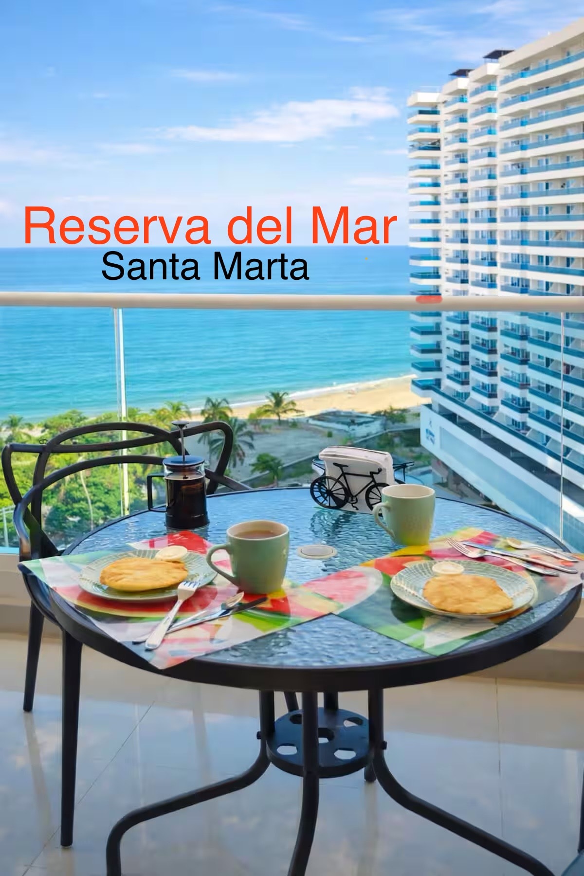 Apartemen modern baru yang spektakuler di lantai 17 dengan pemandangan laut dan akses langsung ke pantai. Tempat yang bagus untuk berlibur, beristirahat dan atau bekerja di kantor rumah. 10 menit ke bandara internasional dan pusat bersejarah Santa Marta, dekat dengan area restoran, bar, pusat perbelanjaan, dan apotek. Kurang dari satu jam dari Taman Nasional Tayrona, Taganga, Minca. Apartemen ini memiliki balkon besar tempat Anda bisa menikmati matahari terbenam terbaik di Kolombia.