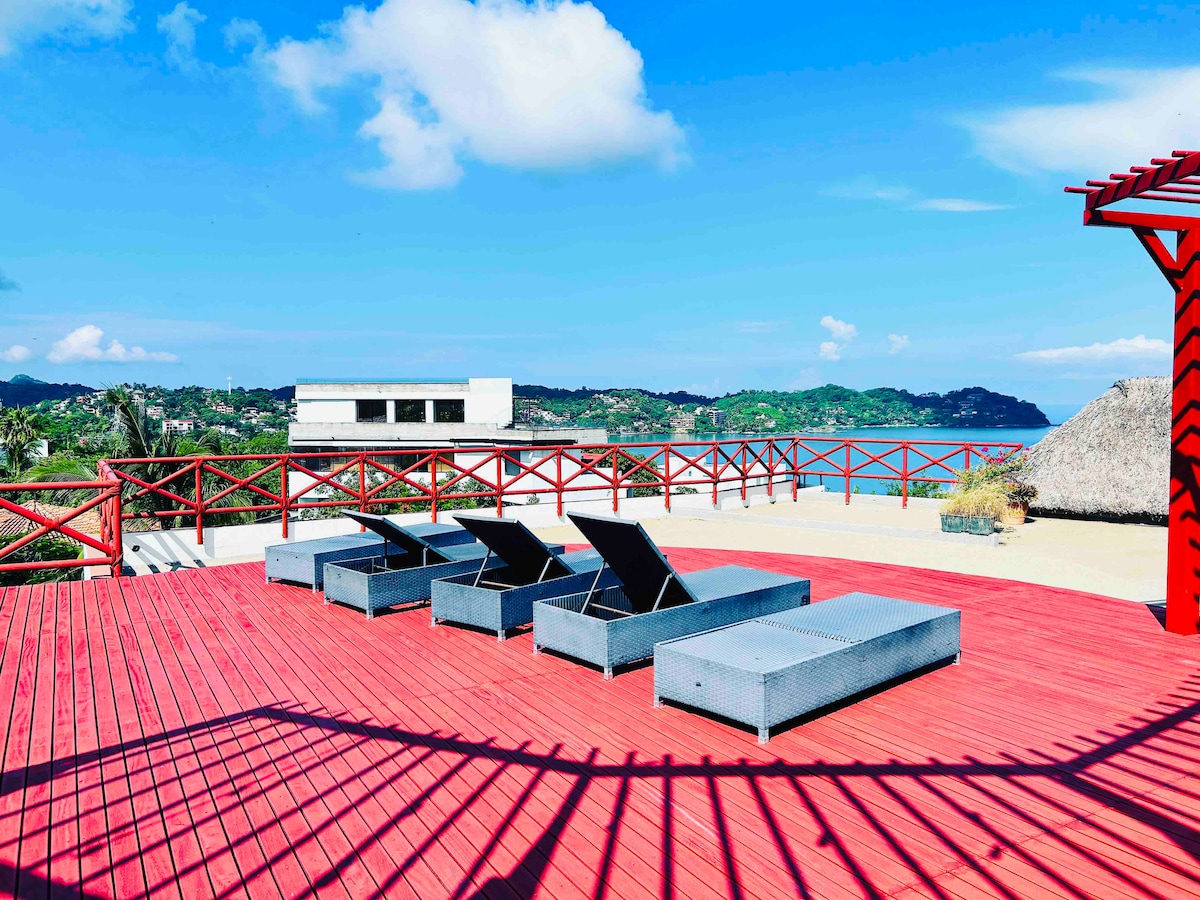 Hermosa suite con TV, WiFi, alberca y vista al mar