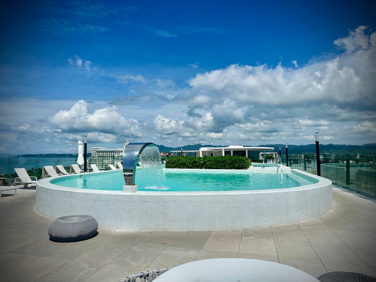 - Amazing roof garden with infinity pool and stunning ocean views in one of the hip areas: Zoho - Wi-Fi, Smart TV, well-equipped kitchen, washer, A/C, parking, gym, kids area & more! - 15 minutes from downtown Vallarta and 25 minutes from Riviera Nayarit - Close to shopping, maritime terminal, hospitals, restaurants, nightlife & activities - Book now and experience the best of Puerto Vallarta in style and comfort!