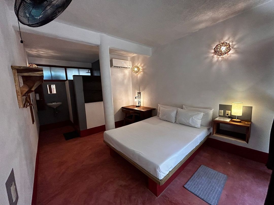 En esta habitación se encuentra en planta alta y te ofrecemos amenidades como aire acondicionado, TV. , Wi-Fi Starlink de alta velocidad, un baño compartido exclusivamente con otro huésped, este baño se encuentra ubicado en la planta baja independiente de la habitación, cocina y áreas comunes.