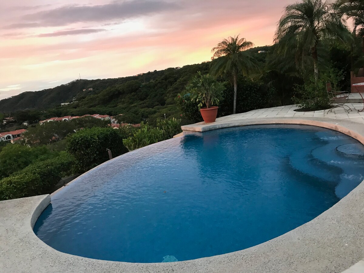 Salah satu pemandangan laut dan pegunungan terbaik di Playas del Coco! Kami menyambut semua orang! Cocok untuk pasangan, keluarga, dan pekerja jarak jauh. Rumah berfasilitas lengkap, terletak di puncak gunung di dalam komunitas berpagar, 10 menit berjalan kaki ke pantai. Toko kelontong, restoran, dan toko di dekatnya. Berkendara singkat dari Bandara Liberia (20 menit). Nikmati konser burung dan monyet setiap senja dan fajar, pemandangan matahari terbenam yang spektakuler di Playas del Coco. Dekat dengan alam, namun tidak jauh dari komoditas!