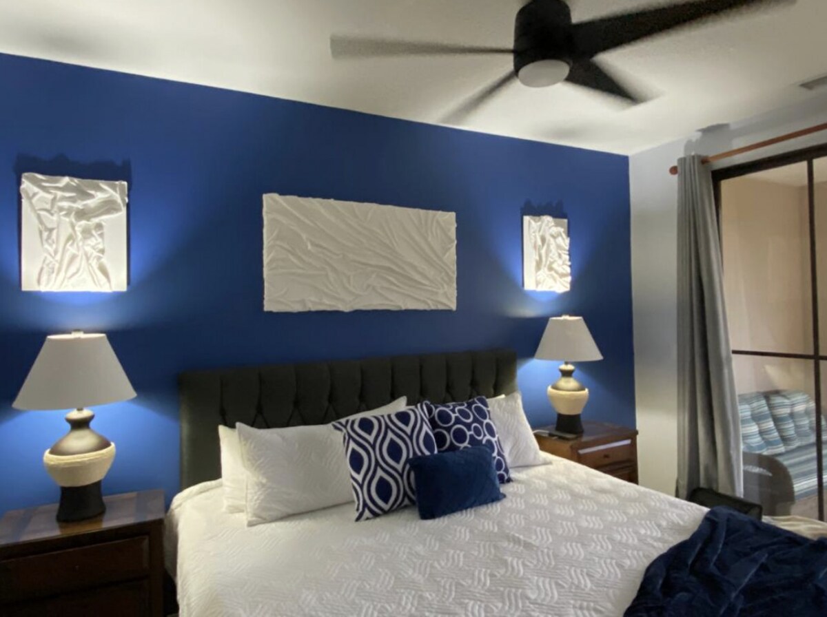 🌴Selamat datang di Palm Haus🌴 Selamat datang di tempat liburan pesisir mewah yang berlokasi di pusat kota, tempat petualangan tropis bertemu kenyamanan yang tinggi. Bersantai di tempat tidur king mewah dengan seprai katun, nikmati fasilitas mandi yang terinspirasi spa, dan minum kopi di balkon pribadi Anda saat matahari terbit. Baik Anda di sini untuk menjelajah, bersantai, atau bekerja dari jarak jauh, Anda akan dikelilingi oleh gaya modern, sentuhan apik, dan suasana tenang yang terasa seperti tempat liburan pribadi Anda sendiri.