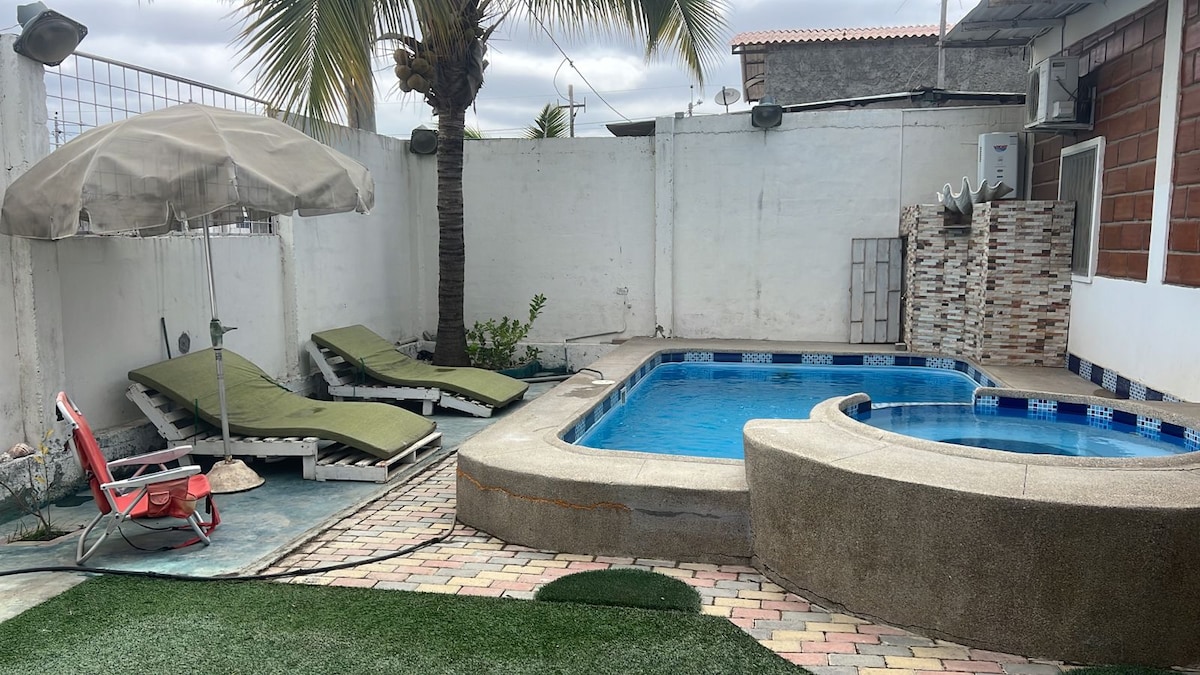 Relájate con tu familia en esta amplia casa a 2 min del Paseo Shopping, dentro de urbanización privada con seguridad 24/7. Disfruta acceso directo a la playa, piscina con hidromasaje, cocina equipada (nevera, microondas, licuadora, arrocera, utensilios), TV con Internet y duchas con agua caliente. Perfecta para descansar y disfrutar en un entorno cómodo, seguro y tranquilo.