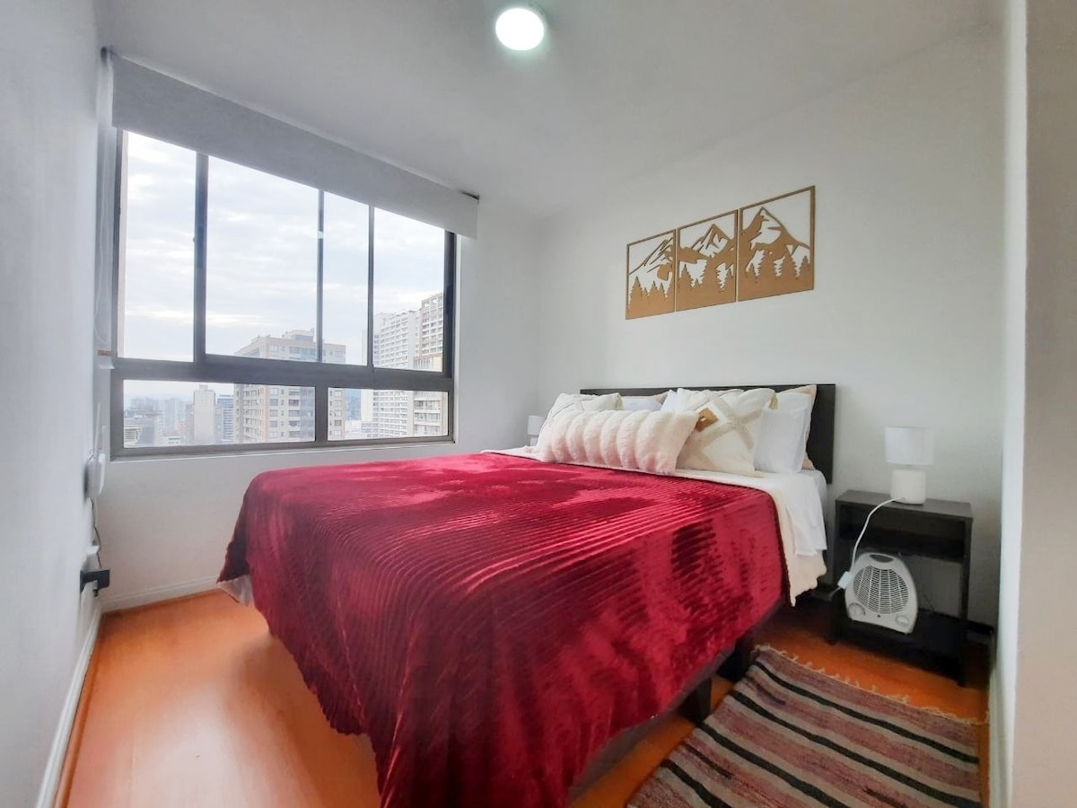 Apartemen menawan di pusat Santiago dengan pemandangan indah pusat kota. Nikmati pencakar langit yang diterangi cahaya siang hari dan pemandangan kota di siang hari. Tempat yang nyaman ini memiliki fasilitas modern, dekorasi elegan, dan semua fasilitas yang diperlukan untuk masa inap yang tak terlupakan. Dari balkon pribadi, Anda bisa menikmati pemandangan panorama dari pegunungan hingga pemandangan kota.