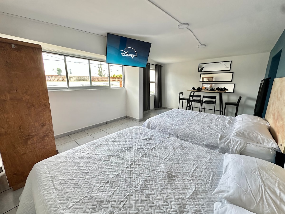 Nikmati ketenangan rumah modern yang terinspirasi oleh Aguascalientes Railways ini. Terletak di Barrio de la Estación tradisional, beberapa blok dari Plaza de las Tres Centurias yang emblematis dan jalan utama: López Mateos, Alameda, Gómez Morín, Calle Madero dan 5 menit dari Stadion Victoria Dilengkapi dengan: - 1 kamar tidur dengan tempat tidur queen - 1 sofacama - Kamar mandi lengkap. - dapur - ruang tamu/ruang makan - TV - internet Apartemen ideal untuk 1 hingga 3 orang.