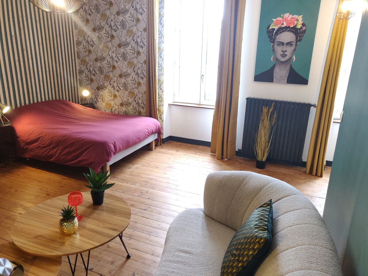 Datang dan temukan apartemen elegan dan kontemporer seluas 50 m² ini, yang terletak di pusat distrik St Michel, 500 m dari pusat kota, Anda akan tenang. Bahan, furnitur, perlengkapan lampu kelas atas, seprai, dan kamar mandi dari Bonsoirs Anda akan merasa seperti hotel. 🌕🌖🌗🌘🌑 Ideal untuk perjalanan bisnis atau perjalanan akhir pekan yang romantis