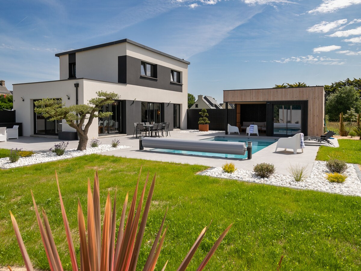 Rumah di Bretagne dengan kolam renang air hangat 800 m dari laut.