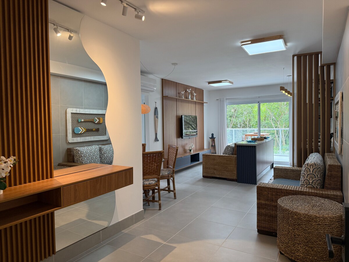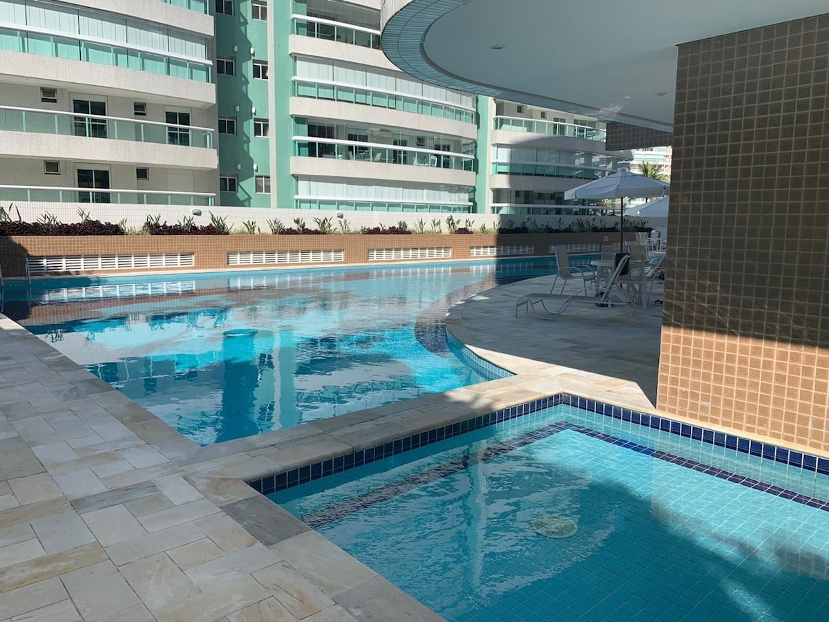 Bersenang - senanglah dengan keluarga Anda di tempat bergaya ini. Apartemen 3 asrama yang sangat baik di kondominium Reserva da Mata, Resort terbaik di Riviera de São Lourenço. Terletak di modul 8 hanya 150 m (4 menit) dari pantai Apartemen dengan dekorasi modern dan sangat lengkap, dengan AC di semua kamar, 4 TV, internet WiFi pribadi, microwave, kompor, kulkas, pemurni air, ruang bawah tanah ber - AC, mesin cuci & pengering, ruang tamu TV 50", peralatan dan aksesori baru. Luas total 181m2