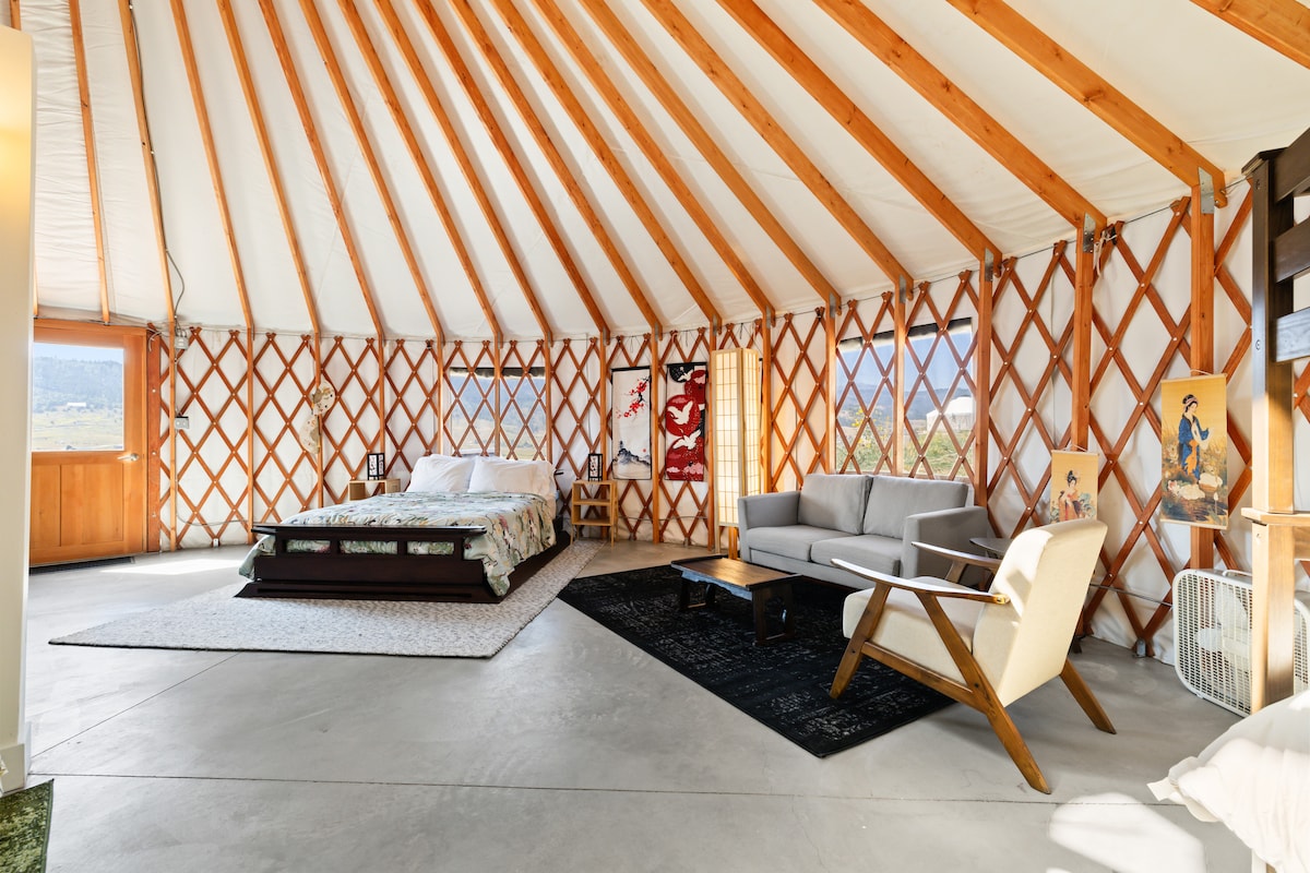 YURT cantik yang dibuat dengan tangan, dibuat dengan tangan, berperabot lengkap dengan pemandangan pegunungan, matahari terbenam yang spektakuler, dan menatap bintang di dekat perapian, Anda akan siap untuk tidur malam yang nyenyak di bawah selimut di tempat tidur queen yang nyaman. Kau akan diistirahatkan dengan baik! Tersedia kulkas kecil dan aneka kopi/teh/kakao & penganan, serta beberapa produk kertas, juga disediakan. Luar biasa pergi atau berhenti di sepanjang jalan Anda, atau hanya datang & bermain!
