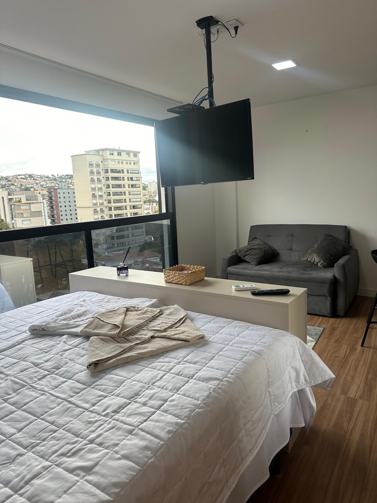 Lindo Studio di tengah Poços de Caldas, sangat dekat dengan restoran dan bar paling trendi di kota ini. Di samping Praça dos Macacos tempat karnaval terbaik di Poços berlangsung. Gedung ini memiliki gym, ruang pertemuan (Coworking) dan laundry. Studio kami lengkap, di mana Anda akan berkesempatan menikmati ruang yang indah, semuanya siap untuk menerimanya sebagai kenyamanan dan keamanan terbesar.