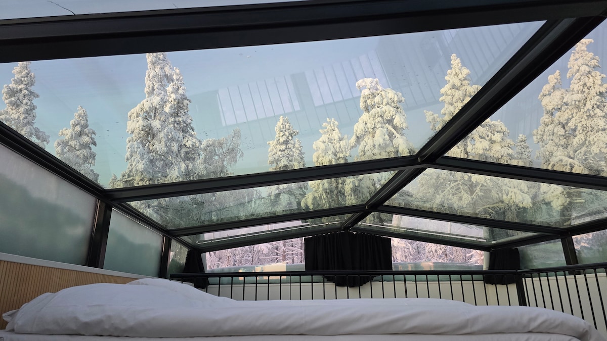 Kabin bergaya iglo modern dengan atap kaca. Atapnya dipanaskan untuk memastikan Anda selalu mudah menikmati menonton aurora borealis, bintang-bintang, atau hanya pemandangan pegunungan yang indah. Memiliki sauna pribadi dan jacuzzi luar ruangan untuk membawa kemewahan ekstra. Kabin berukuran 38 m2 mencakup satu tempat tidur berukuran 160 cm di balkon dan dua sofa tempat tidur berukuran 160 cm di lantai bawah. Dapur yang dilengkapi dengan mesin cuci piring. Wi-Fi gratis, parkir, dan mesin cuci. Harga sudah termasuk pembersihan akhir, seprai dan handuk.