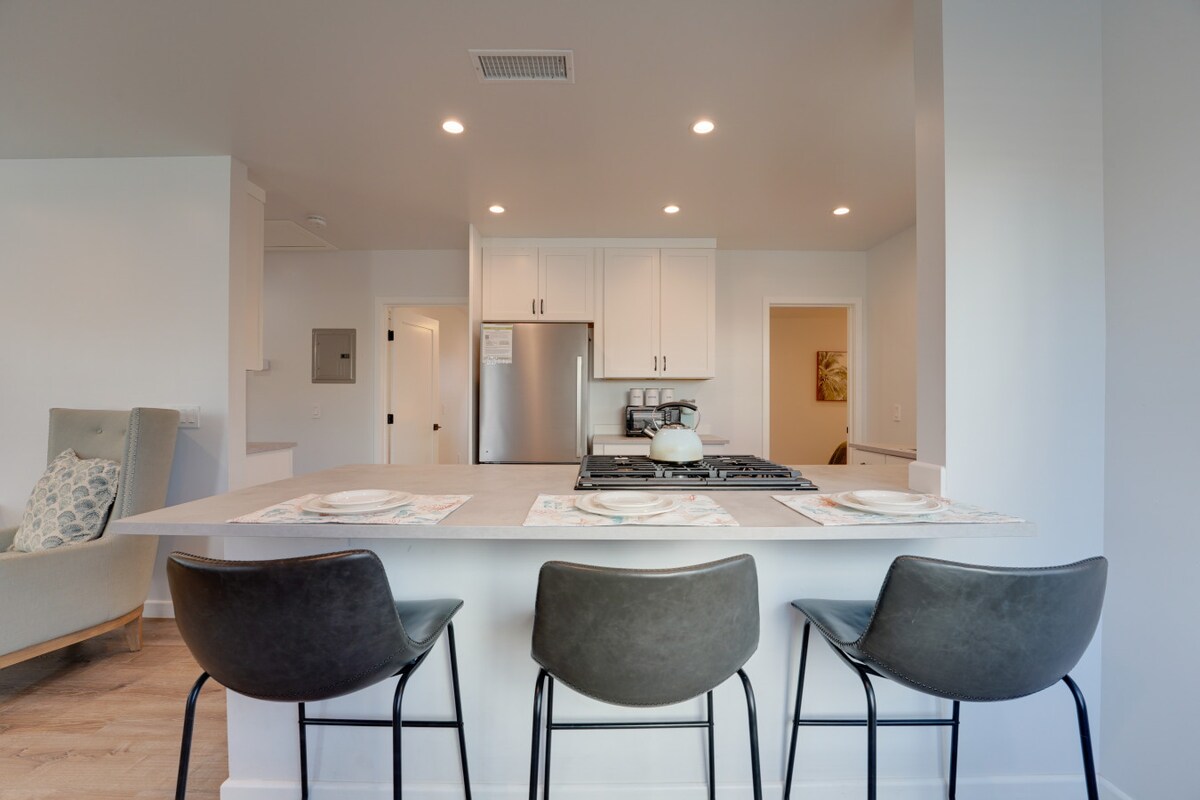 Hanya 2 blok dari laut, ruang modern ini menawarkan yang terbaik dari kedua hal tersebut; terletak di antara Tebing Matahari Terbenam yang tenang, damai, dan Ocean Beach yang meriah. Rumah pantai California selatan modern ini memiliki 2 kamar tidur, dua kamar mandi lengkap, dan ruang tamu terpisah (TV 4K 55”dan internet serat gigabit berkecepatan tinggi )/ dapur kecil dengan microwave, kulkas kecil, pembuat kopi, oven pemanggang roti, dan wastafel persiapan. Area patio luar ruangan dengan meja perapian agar Anda tetap nyaman di malam yang sejuk setelah seharian bersenang - senang.