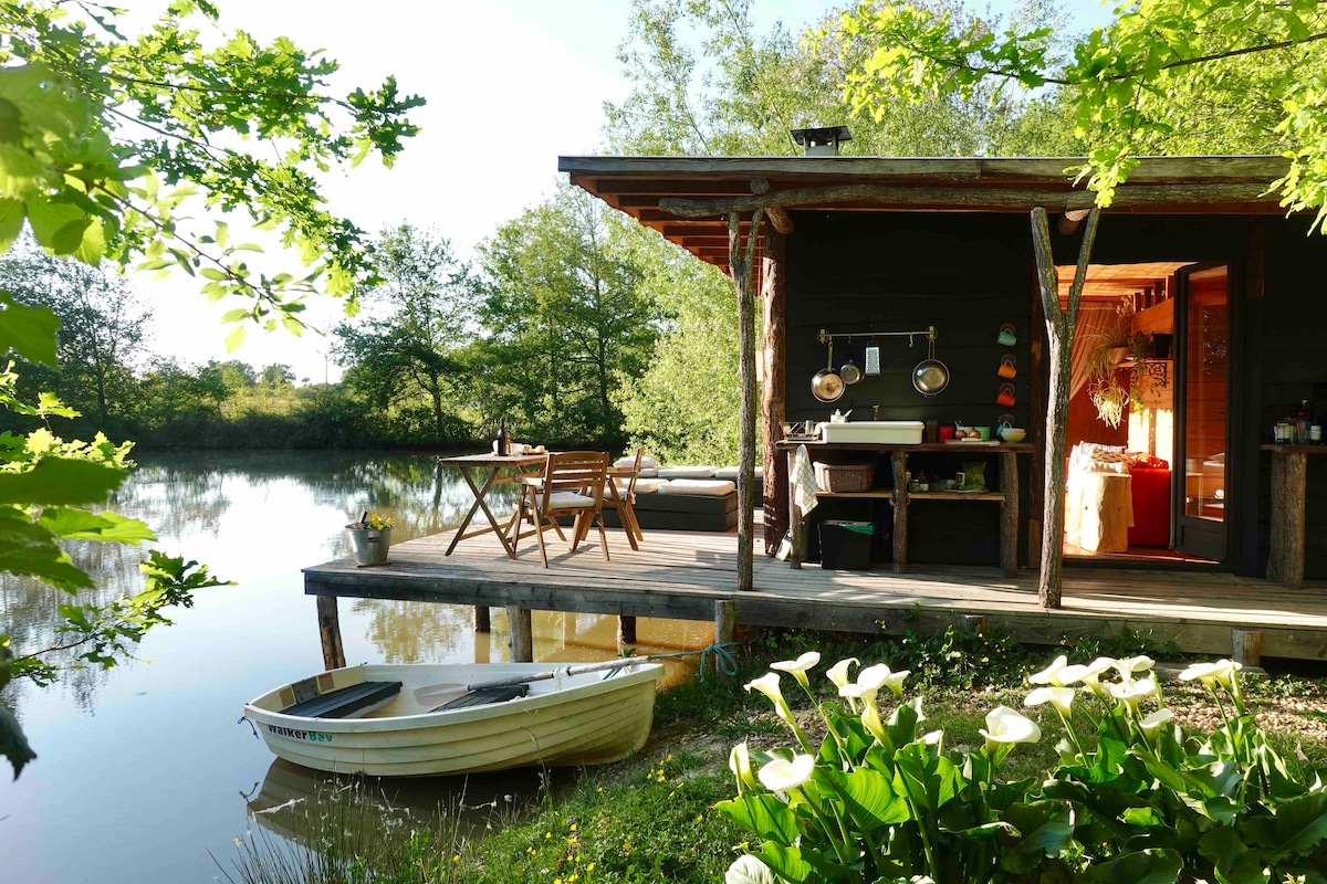 Pondok terapung, tersesat di tengah kolam pribadi di tengah alam. Di sini, tidak ada tetangga, tidak ada kebisingan, hanya air, tenang dan ikan koi meluncur di bawah kaki Anda. Dilengkapi dengan setiap kenyamanan: tempat tidur double, sofa bed, dapur, teras, barbekyu, proyektor video dengan Netflix/Prime, wifi satelit. Akses dengan perahu motor listrik. Tidak berenang, tidak memancing: hanya kesenangan untuk bersantai.