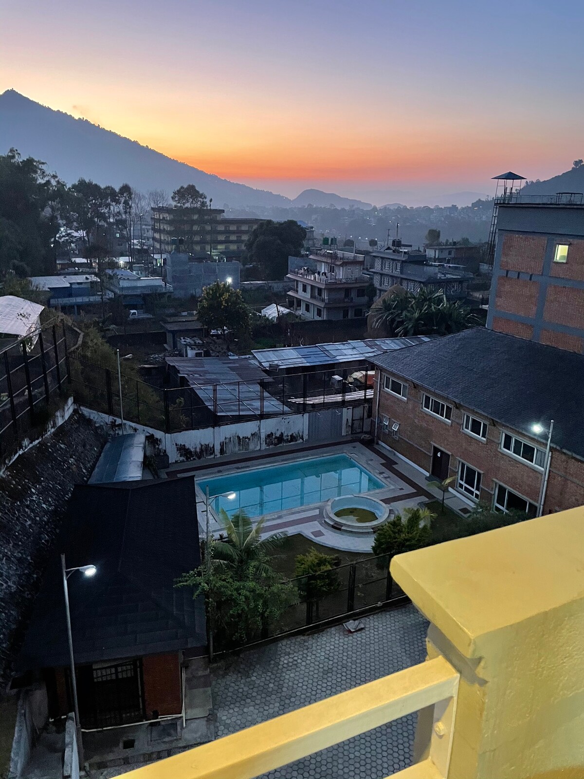 Apartemen yang indah/direnovasi di perumahan yang dalam, Pokhara, Nepal. Kompleks apartemen kami memiliki kolam renang dan Anda bisa melihat Pemandangan Pegunungan dari setiap kamar Apartemen ini berjarak 20 menit berkendara dari tepi danau dan berada di lingkungan yang damai. Di dalam komunitas ini juga terdapat minimarket, yang sangat cocok untuk tamu kami membeli barang - barang yang diperlukan.