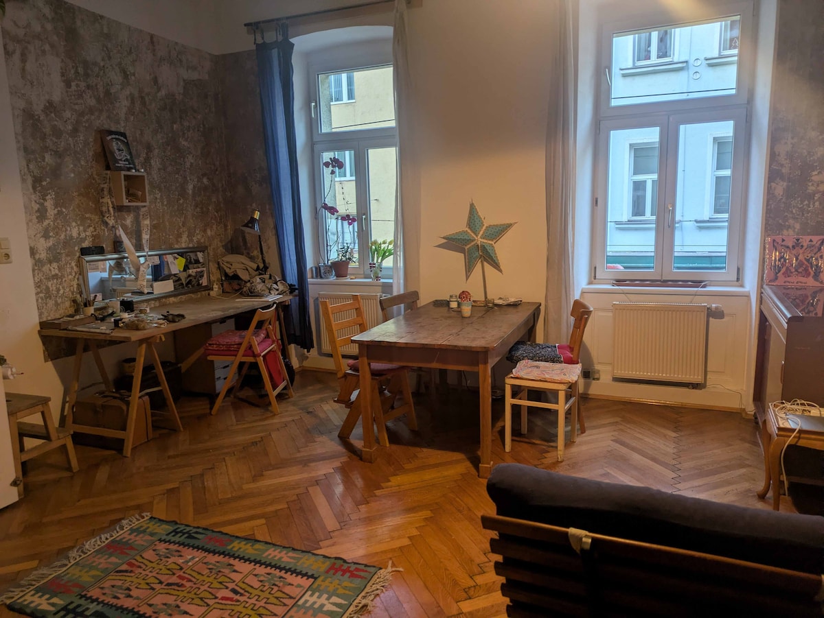Ada ruang untuk hingga 4 tamu di dua kamar tidur terpisah, apartemen ini berlokasi di gedung tahun 1800 - an, membawa perpaduan unik antara Alt - Wien (Wina Lama) dan gaya furnitur 70 - an. Dikelilingi oleh kafe dan restoran, apartemen ini terhubung dengan sangat baik ke area modern lainnya: dalam 5 hingga 10 menit dengan trem Anda bisa mencapai stasiun Schottentor yang memasuki distrik 1 atau distrik ke -7 dan ke -8 dengan Burggasse dan Neubeugasse (lingkungan muda yang sangat direkomendasikan dengan toko dan bar yang bagus)