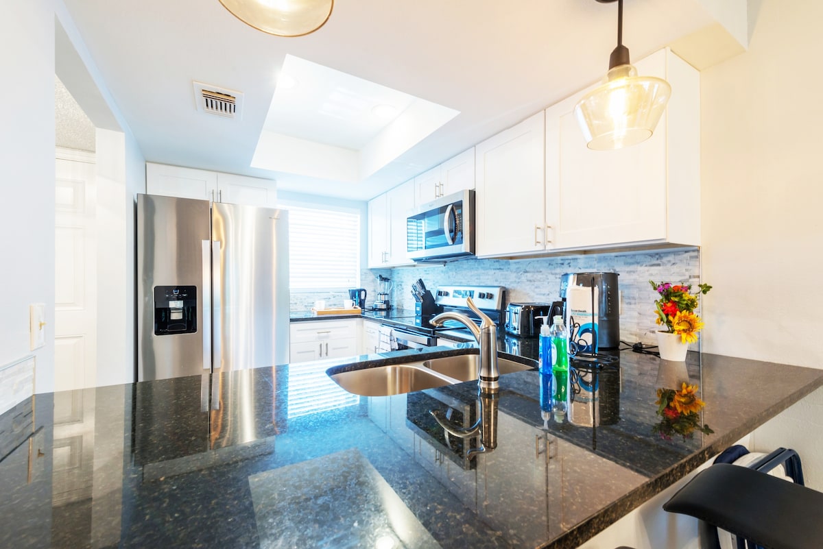 LOKASI paling sentral di kota! Kondominium CANTIK, BARU, dan super trendi di tengah - tengah semuanya! Berperabot apik dan dirancang sepenuhnya untuk menyediakan liburan yang benar - benar ajaib bagi keluarga Anda. Wifi super cepat, saluran kabel, parkir tepat di depan. Lift, komunitas berpagar. Resor ini menawarkan TAMAN AIR GRATIS, sungai malas, bar Tiki, pusat kebugaran, bola voli pasir, lapangan basket, penyewaan kayak, dan banyak lagi. Belanja dan restoran yang luar biasa di sekitarnya dan kunci elektronik untuk check - in mandiri.