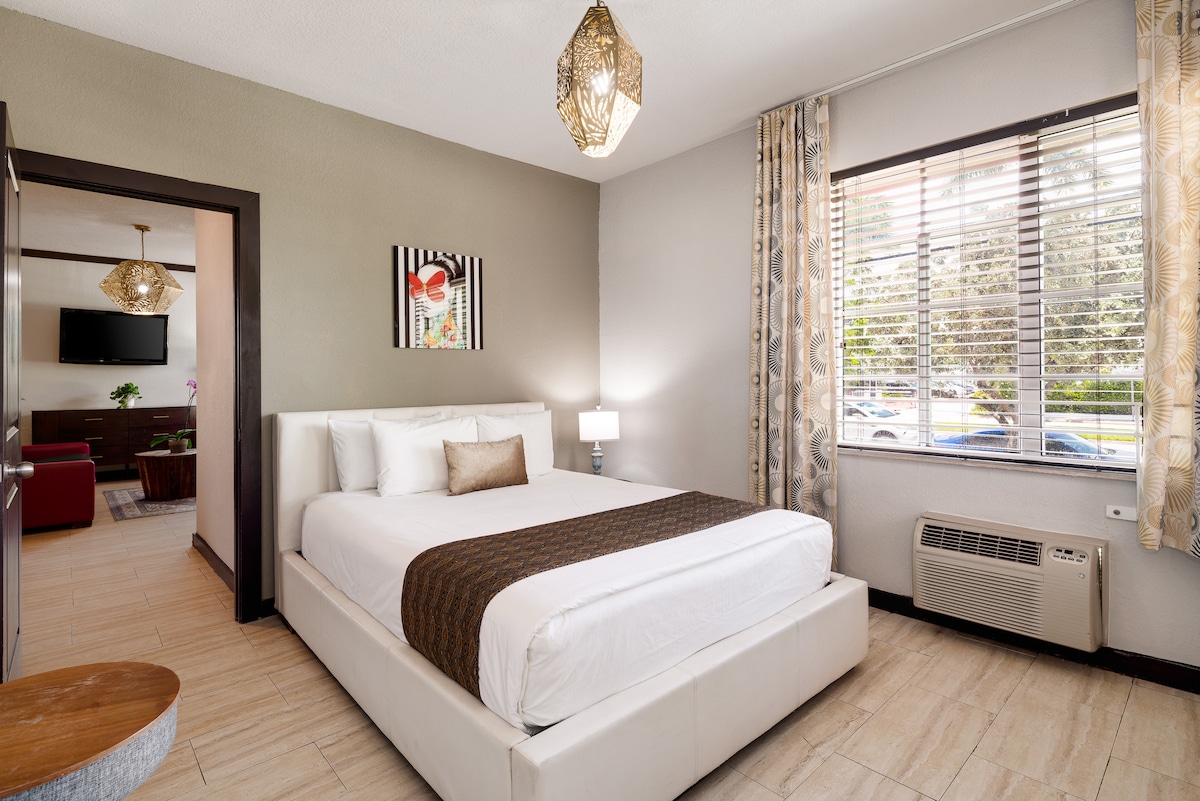 Selamat datang di oasis Florida selatan Anda yang eklektik. Ini merupakan perpaduan yang unik antara pesona retro dan kenyamanan modern, cocok untuk hingga 4 tamu. Hanya beberapa menit dari pantai dan hiburan, tempat ini merupakan basis ideal bagi keluarga dan pelawat bisnis yang mencari tempat liburan yang berkesan. Nikmati kolam renang kami yang menarik, dekorasi eklektik, dan teras yang tenang, menjanjikan masa inap yang penuh karakter dan kenyamanan. Kami terkenal akan keramahtamahan dan sentuhan pribadi kami yang hangat.
