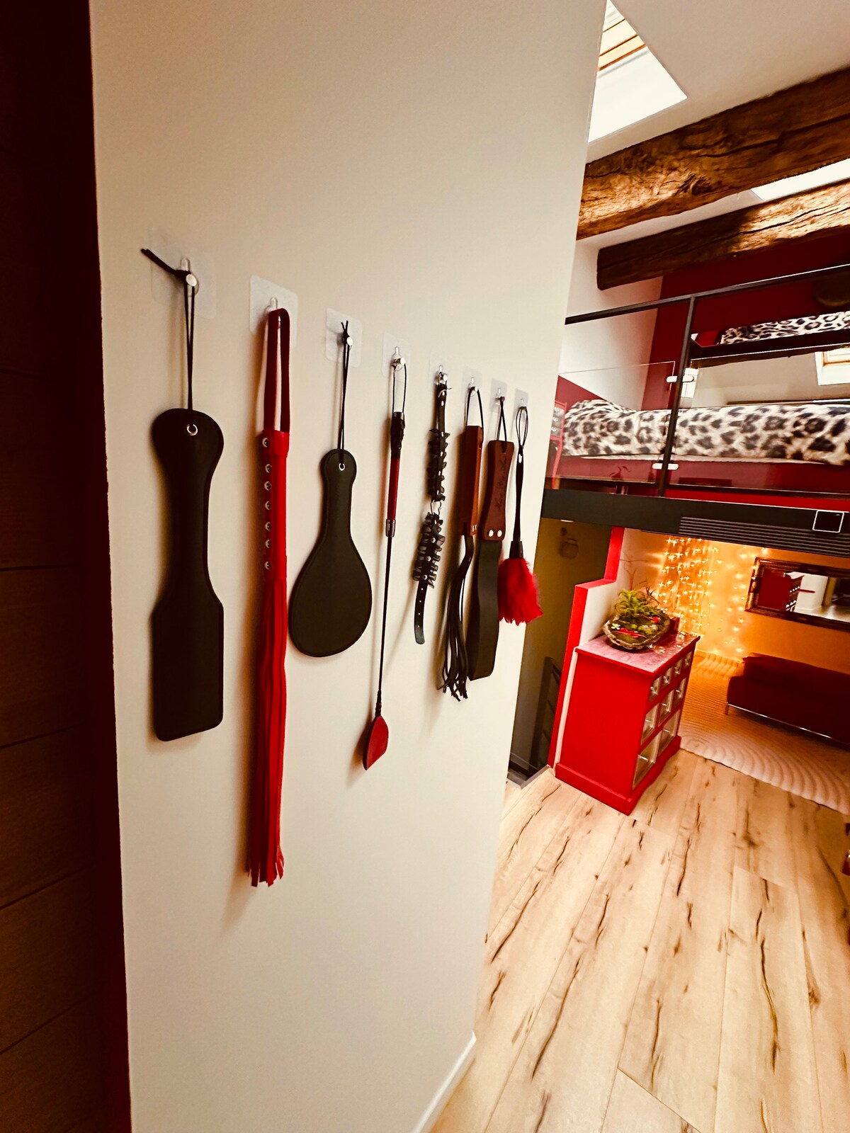 Datang dan temukan alam semesta sensual dan halus di Love Room eksklusif kami, seluruh rumah bintang 3 ini dirancang untuk menawarkan pengalaman santai yang tak tertandingi. Ideal untuk pasangan, rumah ini membenamkan Anda dalam dekorasi mewah di mana setiap detail telah dipikirkan untuk merangsang indra Anda. Dinding dan pengingat warna merah elegan yang terkait dengan kayu untuk suasana yang romantis dan canggih. Ayunan erotis dan salib St. Andrew untuk membangkitkan keinginan terliarmu