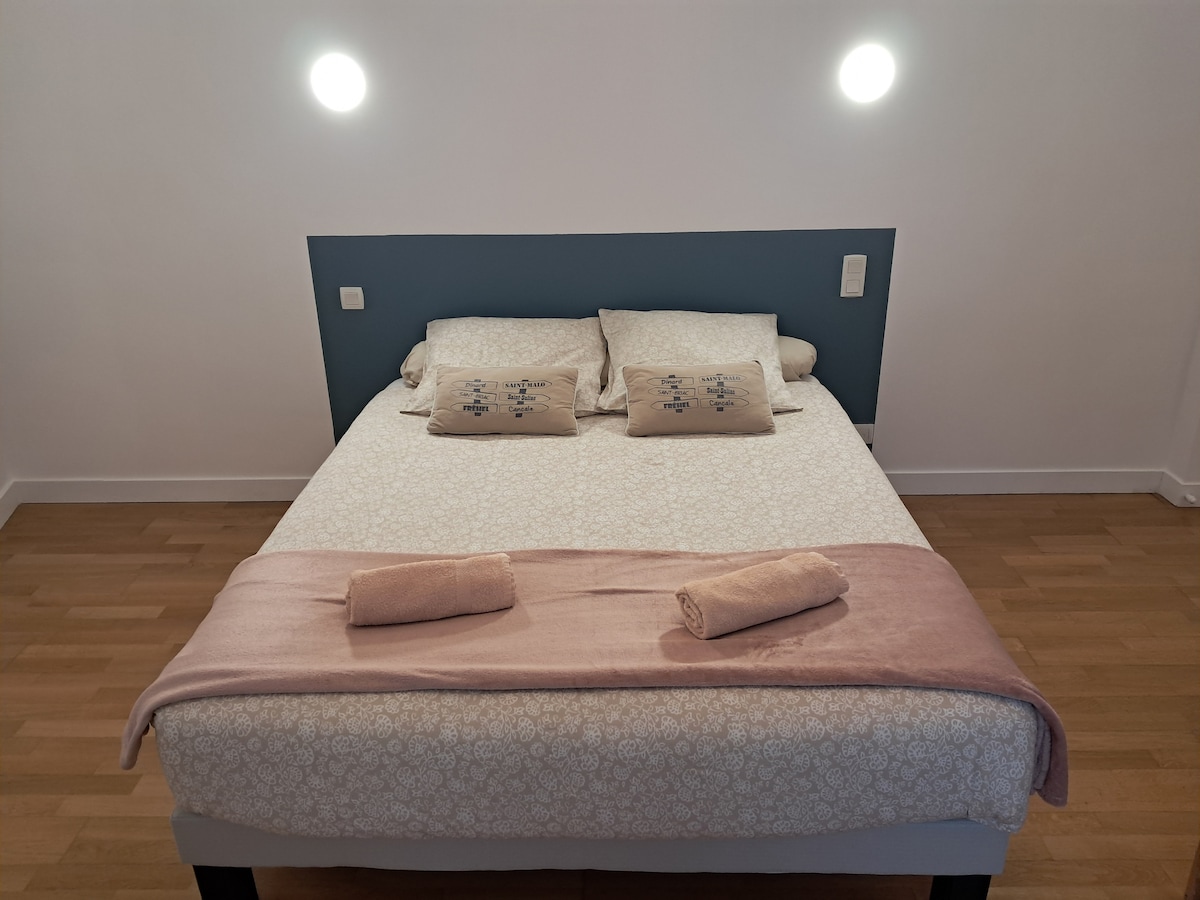 Studio nyaman,dengan dapur terbuka dilengkapi , kamar mezzanine besar dengan tempat tidur besar yang akan dilengkapi dengan seprai lengkap, ruang tamu dilengkapi dengan tempat tidur sofa 140, 1 tempat tidur payung tanpa seprai dan kamar mandi dengan pancuran Italia. Terletak di pedesaan, 10 menit dari toko. Anda akan sangat menyukai tempat kami dikarenakan pedesaan dan area luar ruangan yang tenang Lokasi: ! 20 menit dari Mt St Michel ! 40 menit dari St - Malo.