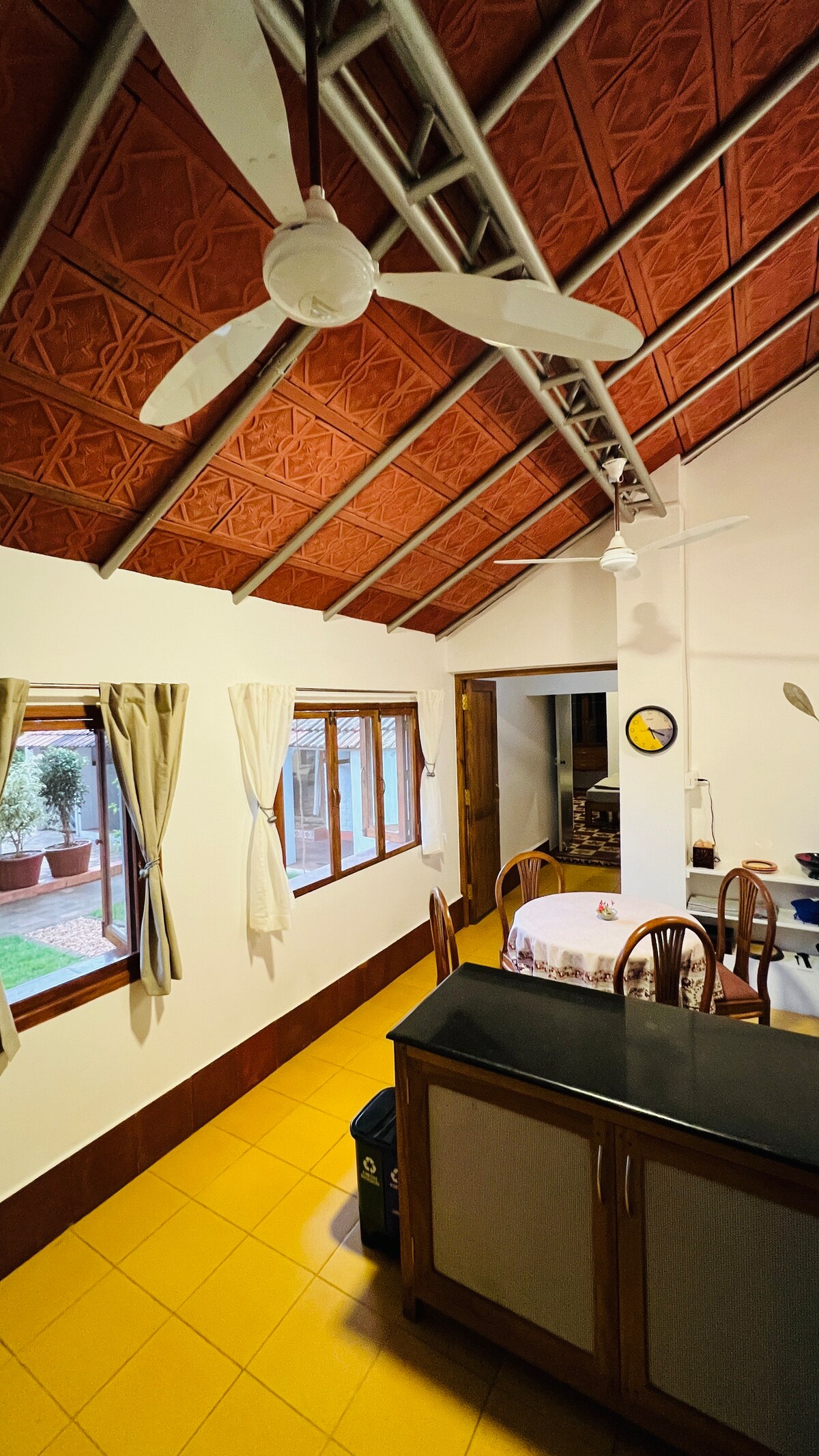 Rumah tandang Anda di Auroville telah didekorasi dengan penuh cita rasa dengan tema Chettinad. Setiap sudut rumah kami bisa Instagram dengan interior berwarna - warni, seni kolam renang, dekorasi antik, dan banyak lagi. 1BHK bisa menampung hingga 4 orang dengan nyaman dengan tempat tidur ayunan dan tempat tidur sofa di ruang tamu. hile ada banyak restoran di dekatnya, dapur kami telah dilengkapi dengan penuh perhatian untuk semua kebutuhan Anda - baik untuk membuat omelet cepat atau makanan India lengkap. Jadi duduklah, bersantai, dan nikmati kopi Anda.