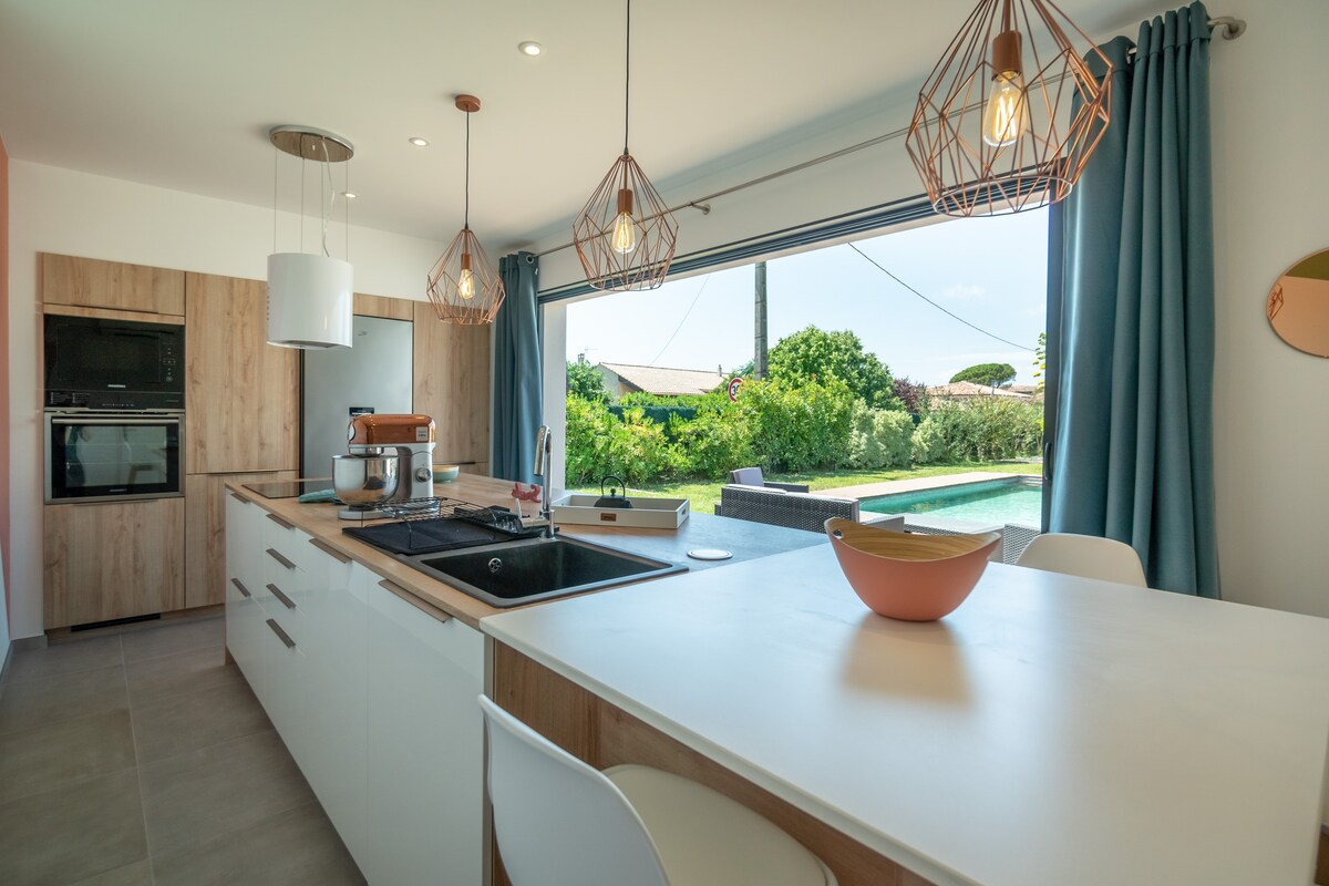 Villa 6 orang dengan kolam renang, 3 kamar mandi, dekat Sète