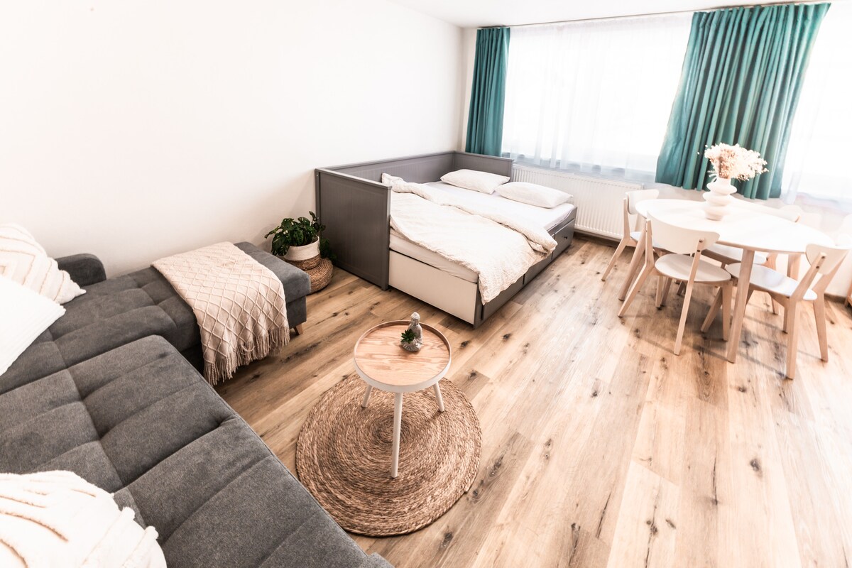 Apartemen 2 kamar tidur dengan balkon di desa yang indah tepat di bawah High Tatras, di sekitar Poprad dan Starý Smokovec, dengan pemandangan Tatras, parkir gratis di halaman, privasi tidak terganggu dan fasilitas lengkap. Cocok untuk 1 -6pax. Ada kasur dormeo berkualitas di tempat tidur ganda yang ditarik keluar. Harap hormati bahwa saya juga memiliki barang - barang pribadi di dalamnya. Pintu masuk/keluar jalan tol D1 berjarak sekitar 5 menit dengan mobil. Tempat ini didisinfeksi secara menyeluruh setelah setiap keberangkatan tamu.