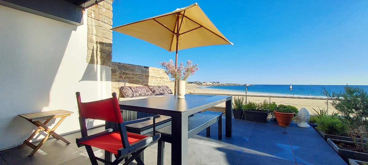 Maison en bord de mer, face à la Côte Sauvage. Vous profiterez de la vue sur l’océan depuis la maison. La maison fait partie d’une résidence composée de 6 petites maisons mitoyennes. L’environnement est très calme tout en restant proche du centre-ville, vous pourrez même y aller en longeant la mer par le chemin côtier. Linge de maison à apporter : housse de couette en 220x240, drap-housse en 140, serviettes de toilettes, torchons. Location possible pour 40€/chambre ( lit, toilette, torchon )