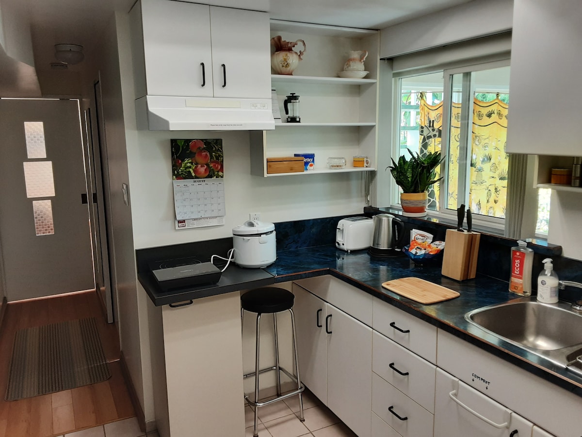 Selamat datang di suite mandiri kami yang baru direnovasi, berlokasi dekat dengan pusat kota dan tempat wisata. Dengan pintu masuk pribadi, nikmati privasi dan fleksibilitas. Suite ini, yang terletak di ruang bawah tanah lantai dasar, menawarkan cahaya alami yang cukup. Di dalamnya, temukan kamar tidur nyaman dengan tempat tidur berukuran queen dan tempat tidur double studio dengan tirai untuk privasi. Ruang tamu juga memiliki tempat tidur sofa untuk ruang tidur tambahan. Tetap terhubung dengan WIFI gratis dan parkir di lingkungan yang aman.