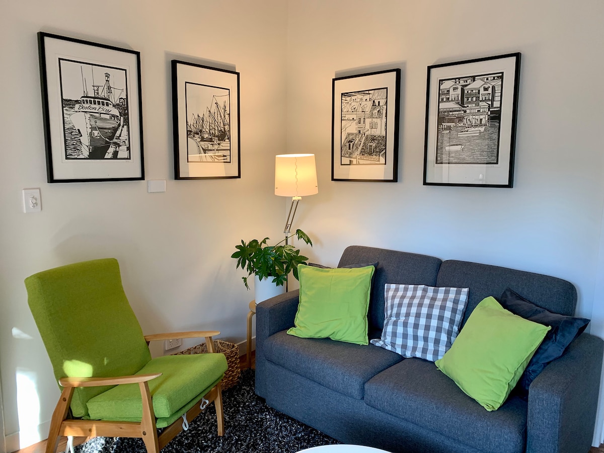 Selamat datang di pedesaan bergaya Boho kami di Bnb. Lokasinya hanya lebih dari 1km dari CBD dan tepi pantai. Taman/halaman seluas 1,3 hektar kami yang sepenuhnya berpagar menjadi tempat yang indah bagi anak - anak dan hewan peliharaan untuk bermain di halaman dan ayunan. Tempat ini menampilkan ruang tamu luar ruangan dengan dek besar dan BBQ dan tempat duduk di bawah pepohonan juga. Pemandangan pedesaan menampilkan pemandangan Winter Hill dan sekilas laut melalui Happy Valley. Papan pasir dan papan boogie juga tersedia untuk digunakan