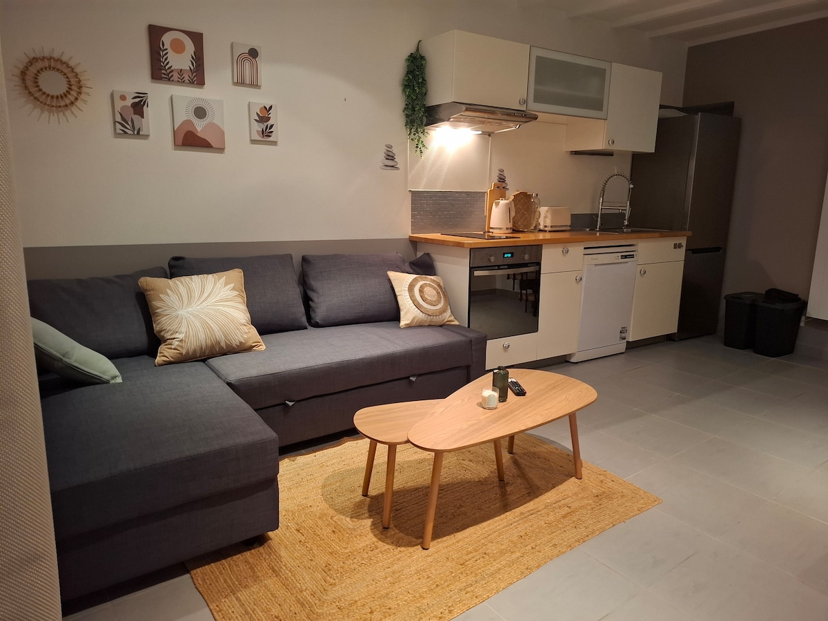 Studiocaroline44 n°2 adalah studio mandiri baru, berdekatan dengan tempat tinggal utama saya, tenang dan nyaman. Ideal untuk 2 orang, sangat cocok untuk 3 atau 4 tamu berkat tempat tidur double 160 × 200 di mezzanine dan tempat tidur trundle 160 × 200 yang terletak di lantai dasar. Akomodasi satu lantai, mudah diakses dan cocok untuk lansia. Dekat dengan Nantes, bandara, Planète Sauvage dan 25 menit dari pantai. Seprai, handuk, kopi dan teh disediakan. HosTeladan selama lebih dari 3 tahun.