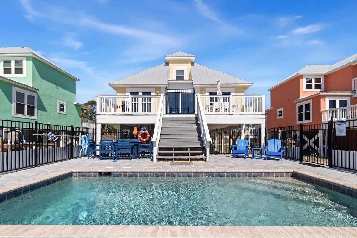 Rumah Pantai ⭐️Mewah 4 kamar tidur ⭐️ Dapat menampung 12 orang di Windmark Beach ⭐️ Kolam Renang Berpemanas 1 Okt - 30 Apr ⭐️ 6 Seat Golf Cart ⭐️ Langkah-langkah untuk Akses Pantai Ramah ⭐️Hewan Peliharaan Anda akan berjalan ke kolam renang komunitas mewah di mana Anda bisa bersantai menghadap Teluk. Anda bisa berjalan kaki ke pantai dalam hitungan menit dari rumah untuk berenang di perairan hangat teluk atau bersantai di bawah sinar matahari. Naik kereta golf ke Pusat Desa terdekat untuk makan. Akhiri hari Anda dengan bersantai di teras tertutup atau di area api unggun luar ruangan.