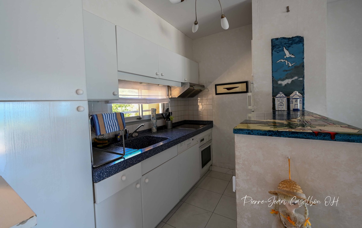 Idealnya terletak di pusat Port - Vendres, dekat teluk dan 3 km dari Collioure, studio lantai dasar besar seluas 39m² di daerah yang tenang dan dekat dengan pelabuhan dan fasilitas. Baru direnovasi dan dilengkapi perabotan, tempat ini sangat fungsional dan memiliki kamar tidur di dalam.