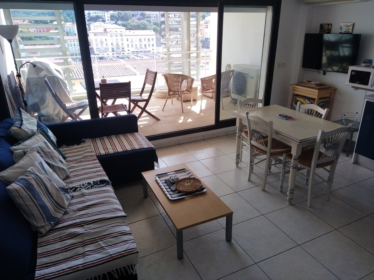 SEWA LIBURAN MINI 7 MALAM MUSIM PANAS dan AKHIR TAHUN/ 3 atau 4 malam untuk AKHIR PEKAN LIBURAN sesuai kalender 42 m2, 4 orang, 1 kamar tidur 160, 1 mezzanine (2 tempat tidur), garasi tertutup individu, hunian yang tenang. Pemandangan laut balkon + pintu masuk pelabuhan. Lingkungan tinggal yang tenang, pelabuhan dan pusat penyelaman 5 menit berjalan kaki. Collioure 2,5 km, Spanyol 20, jalan yang menghadap ke laut. Pantai. Jalan - jalan/hiking yang indah di pedalaman pegunungan LAYANAN KEBERSIHAN RUMAH OPSIONAL Apartemen menjadi bersih jika tidak, biaya kebersihan 60 €. Seprai,Handuk,Handuk, Alas Mandi, Produk NON Kebersihan DISEDIAKAN