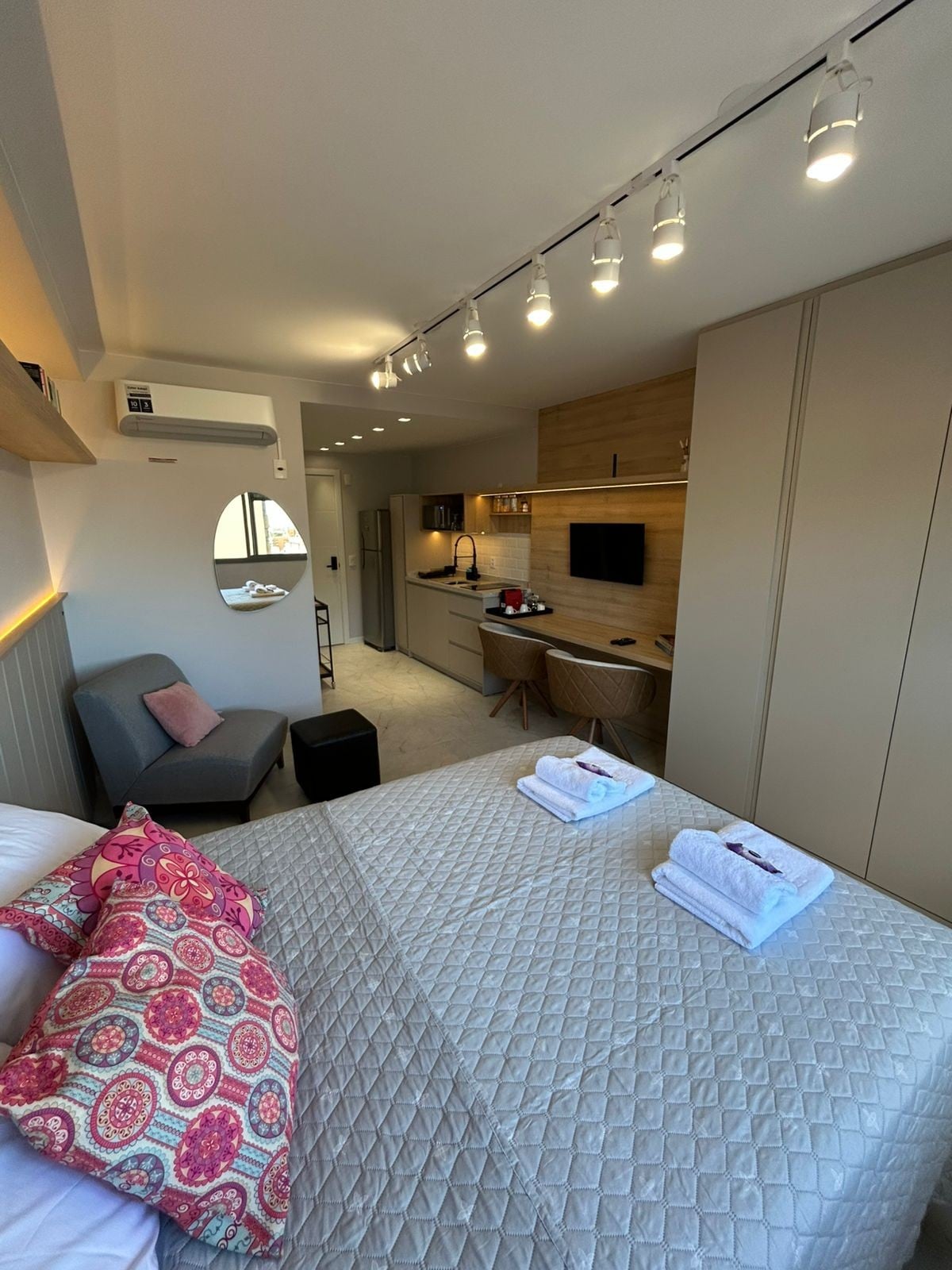 Nikmati pengalaman unik di studio yang ramah dan bergaya ini, yang dirancang dengan detail untuk menawarkan kenyamanan, fungsionalitas, dan banyak gaya. Ap biru yang direncanakan adalah diferensial eksklusif, dengan pencahayaan lembut dan dekorasi yang dirancang untuk bersantai, ponsel cerdas dan serbaguna yang berubah menjadi meja makan atau dukungan memasak — cocok untuk mereka yang menghargai fungsionalitas. Piano Digital tersedia untuk bersantai, berlatih, atau terinspirasi. Smart TV, Wi - Fi.